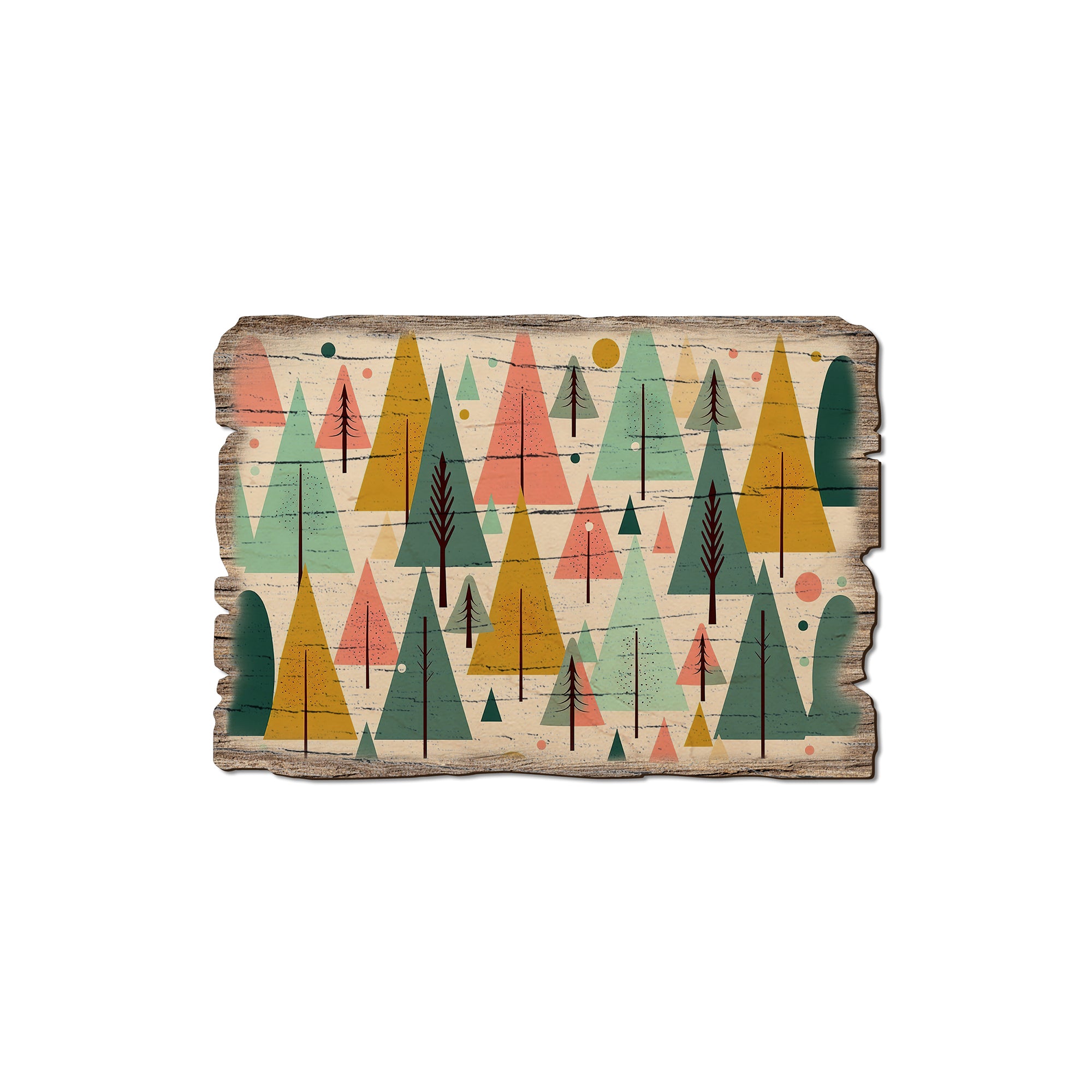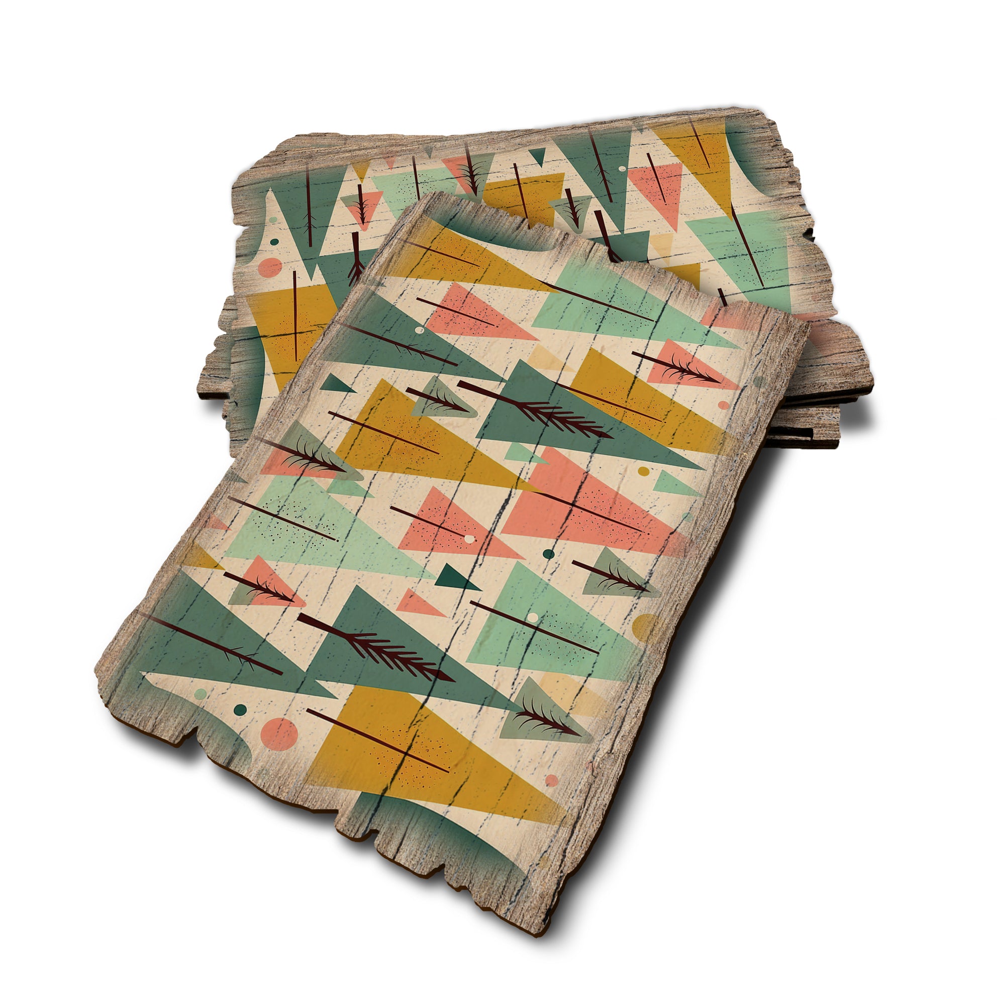 - Laser charred edge and colorful imagery creating arustic and weathered look.