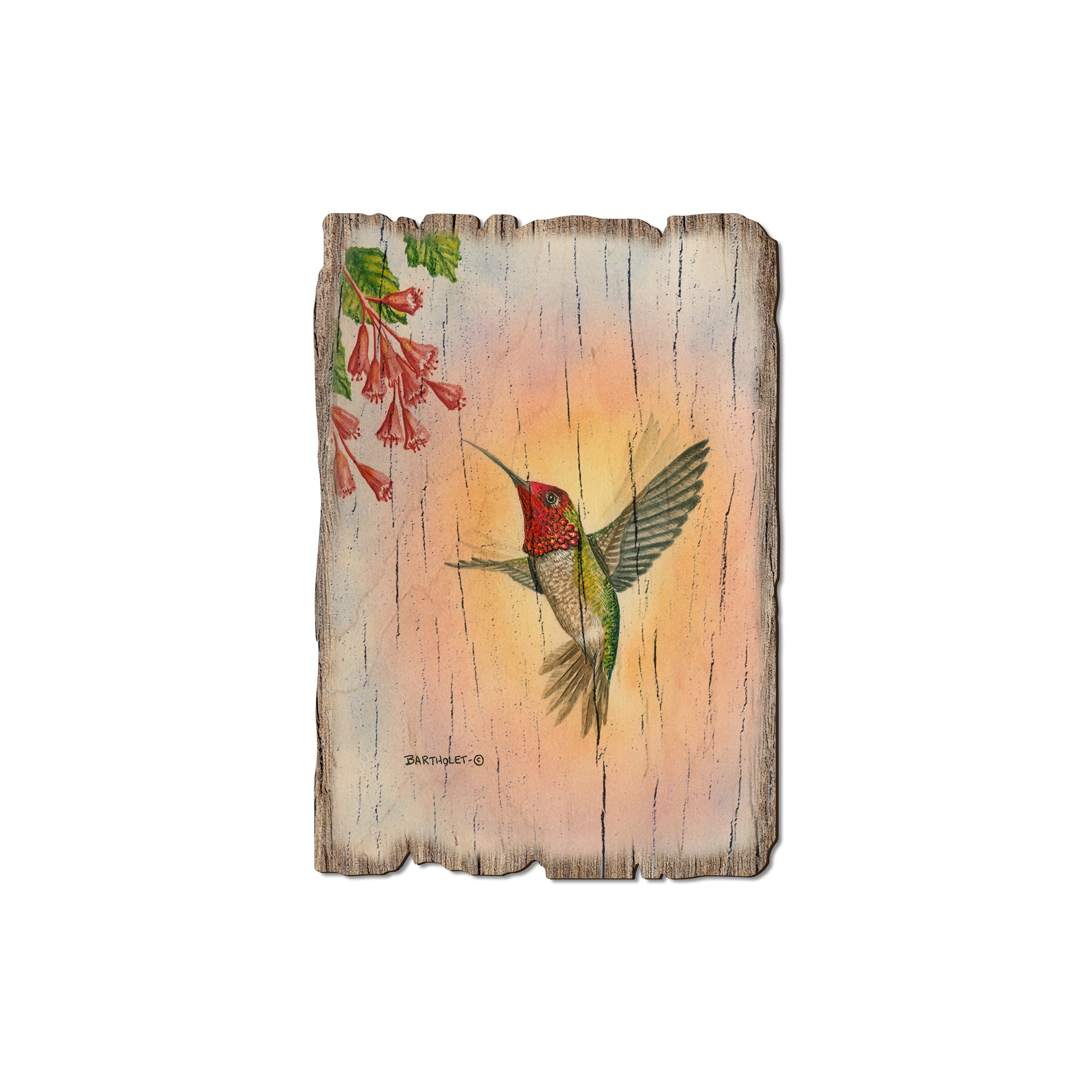 - Laser charred edge and colorful imagery creating arustic and weathered look.