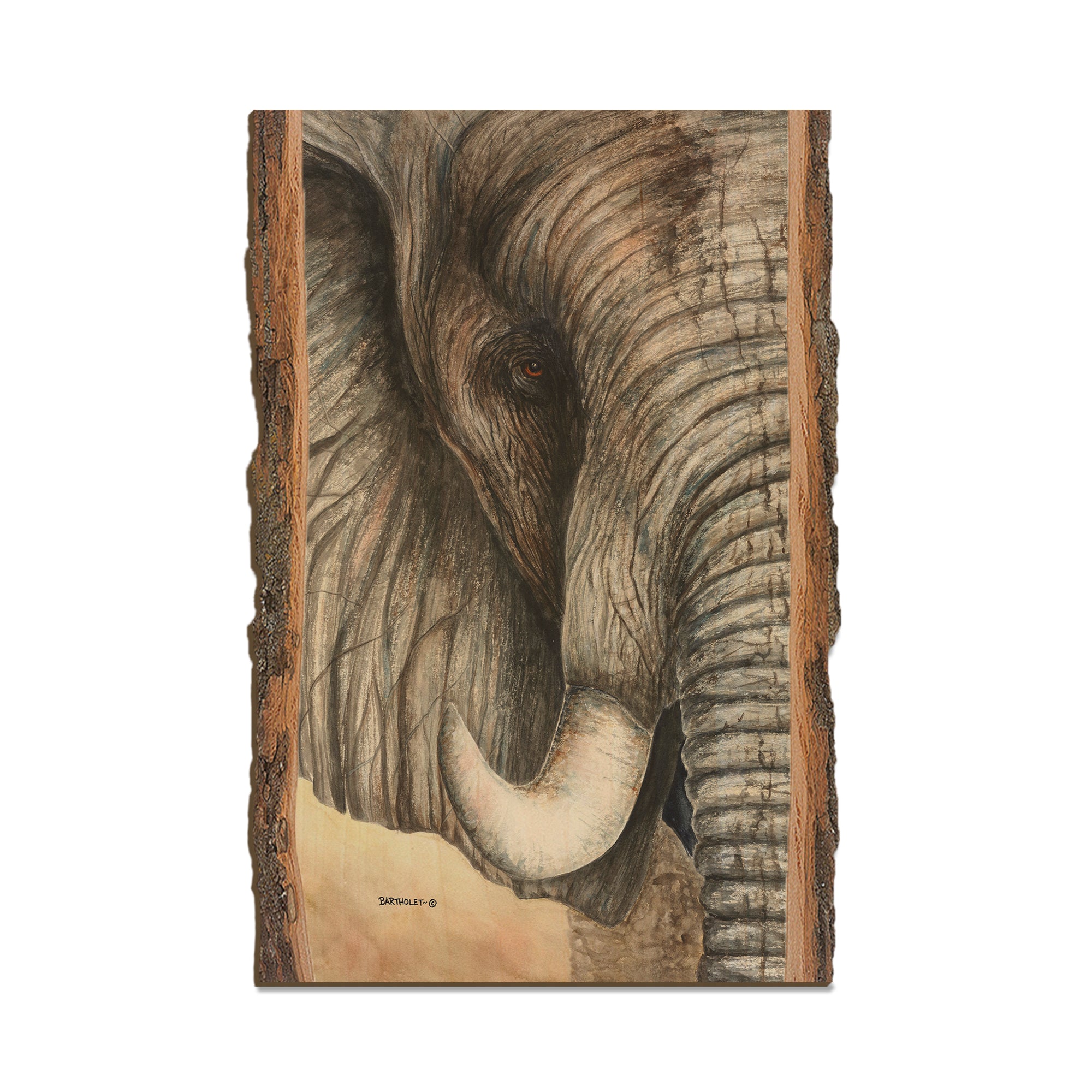 - Laser charred edge and colorful imagery to create a believable 'live edge'.