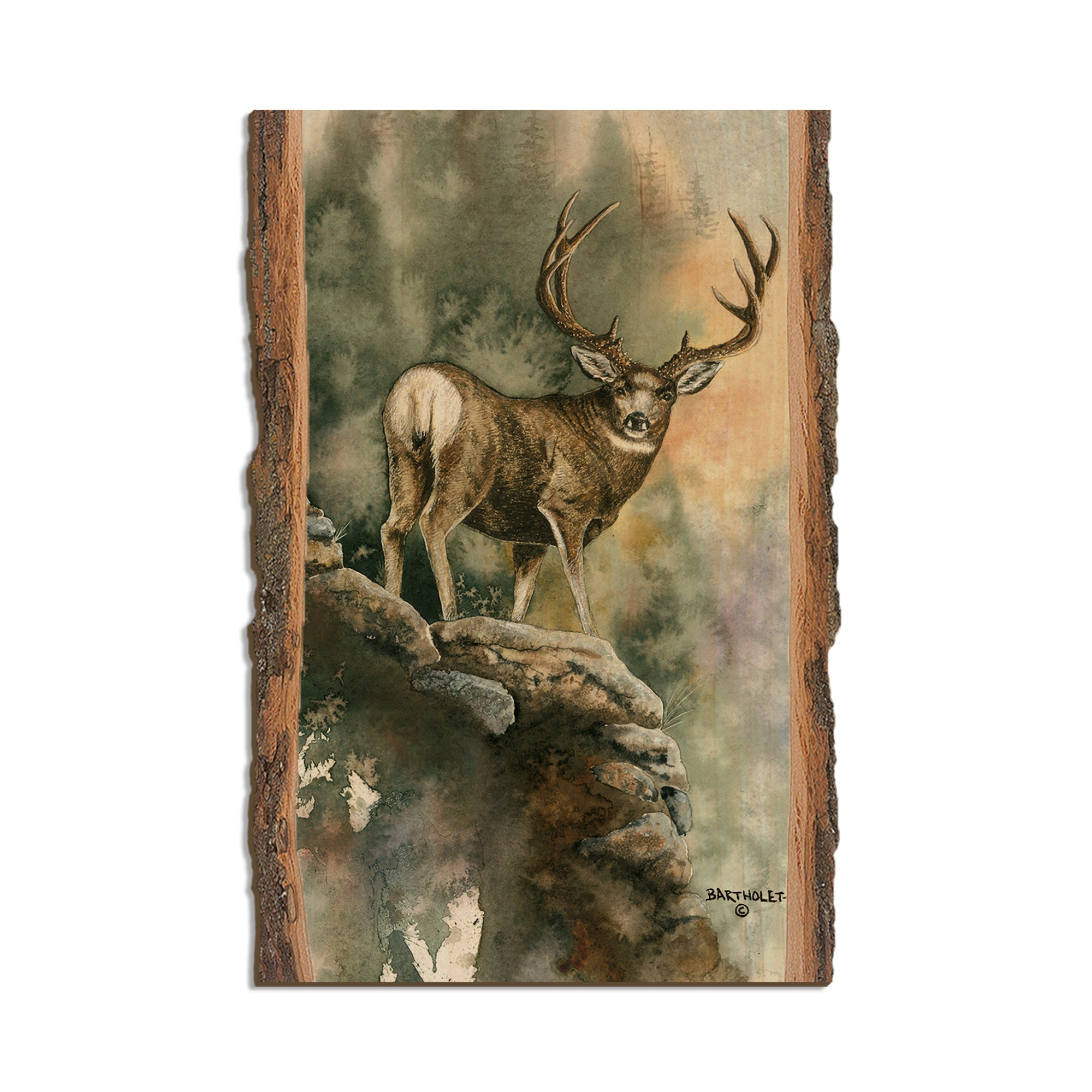 - Laser charred edge and colorful imagery to create a believable 'live edge'.
