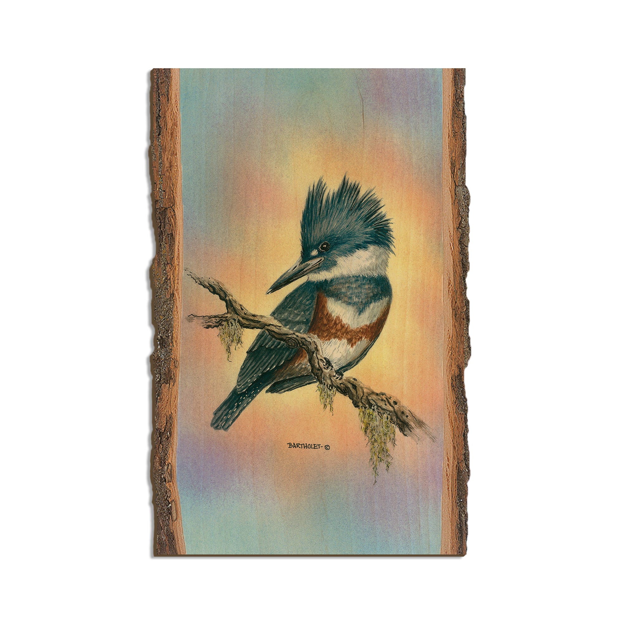 - Laser charred edge and colorful imagery to create a believable 'live edge'.