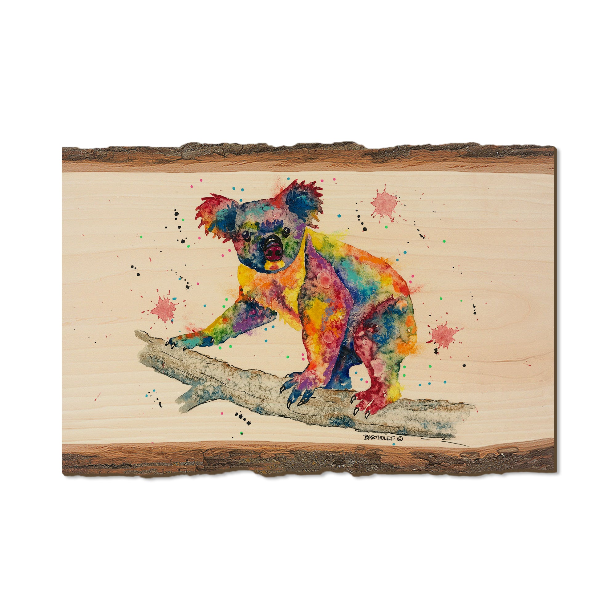 - Laser charred edge and colorful imagery to create a believable 'live edge'.