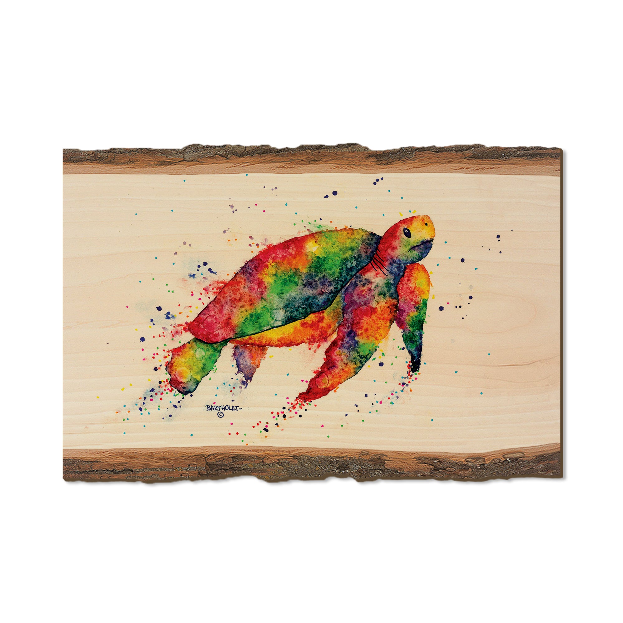- Laser charred edge and colorful imagery to create a believable 'live edge'.