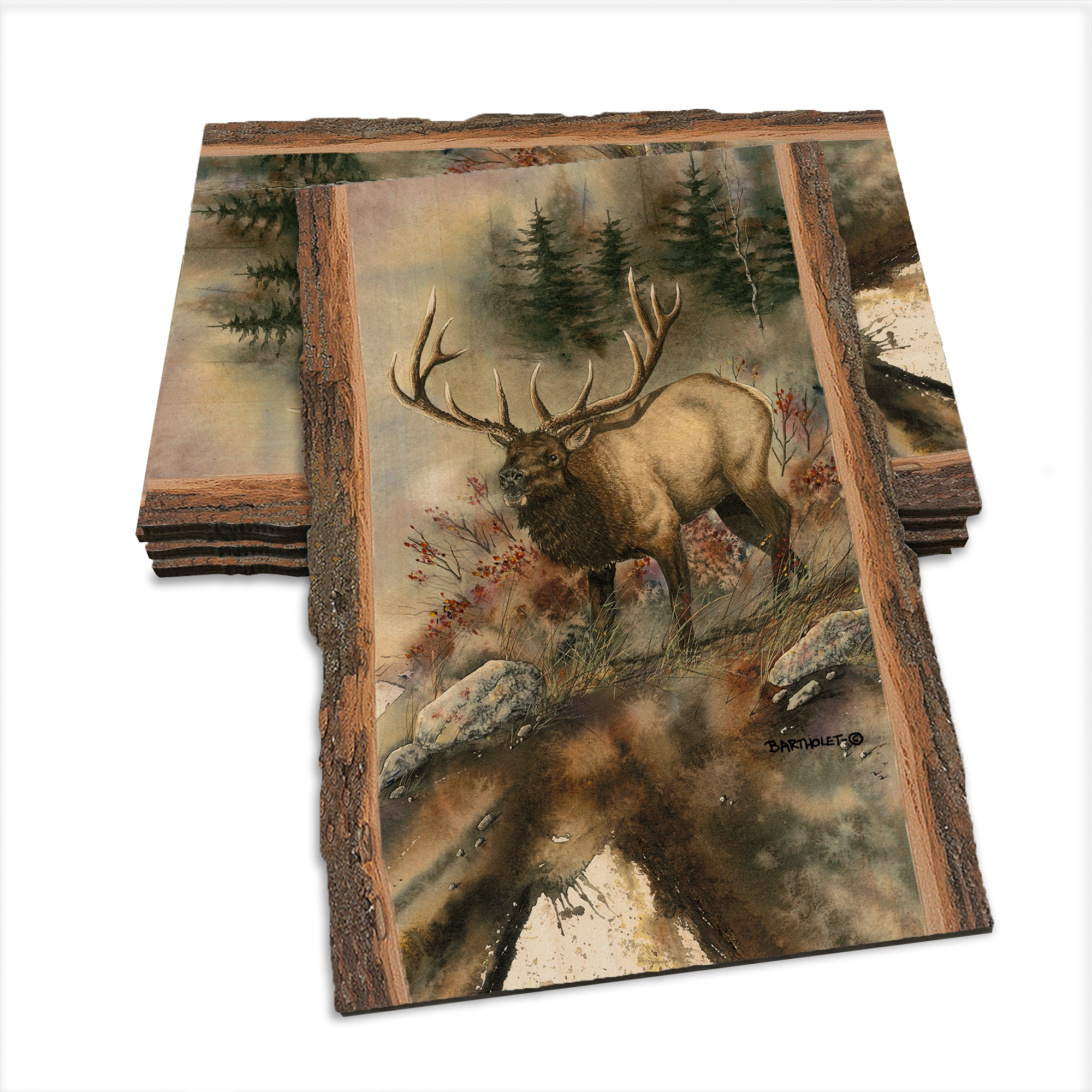- Laser charred edge and colorful imagery to create a believable 'live edge'.