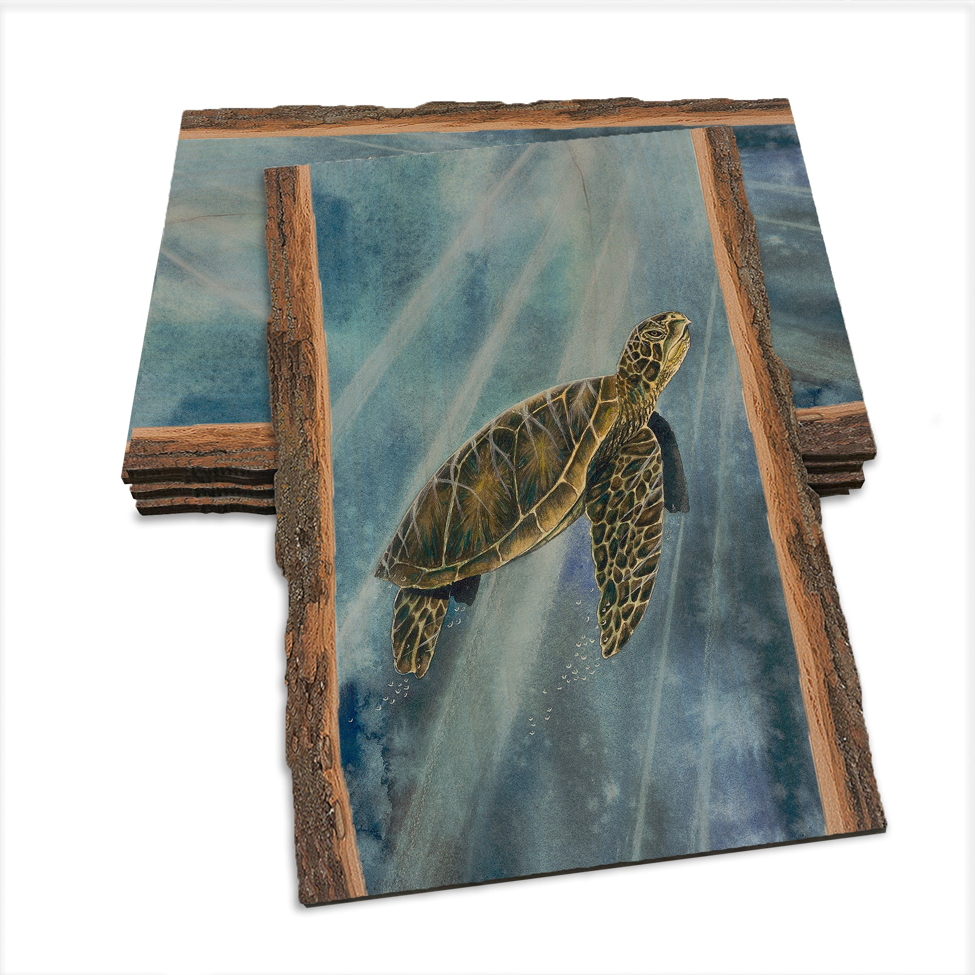 - Laser charred edge and colorful imagery to create a believable 'live edge'.
