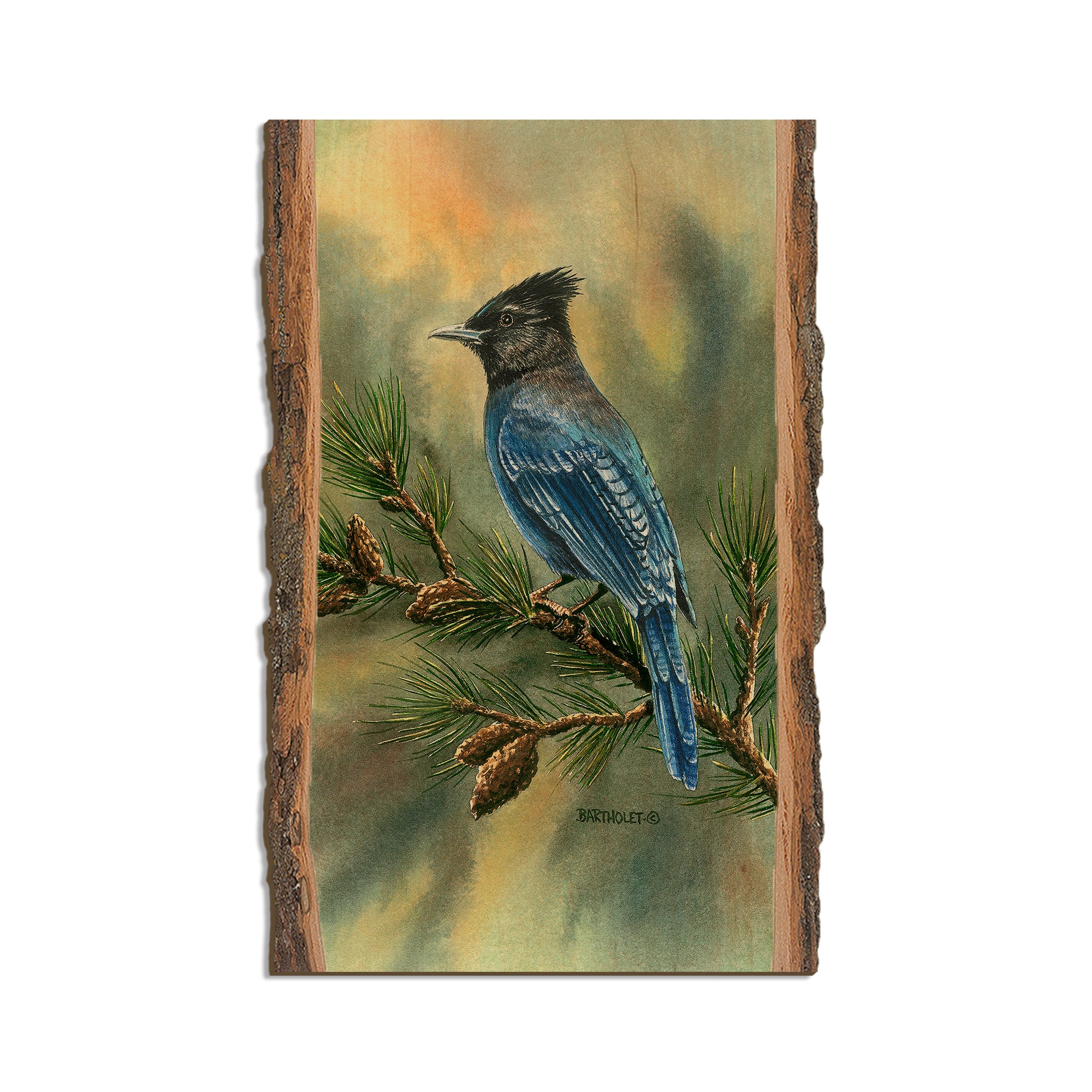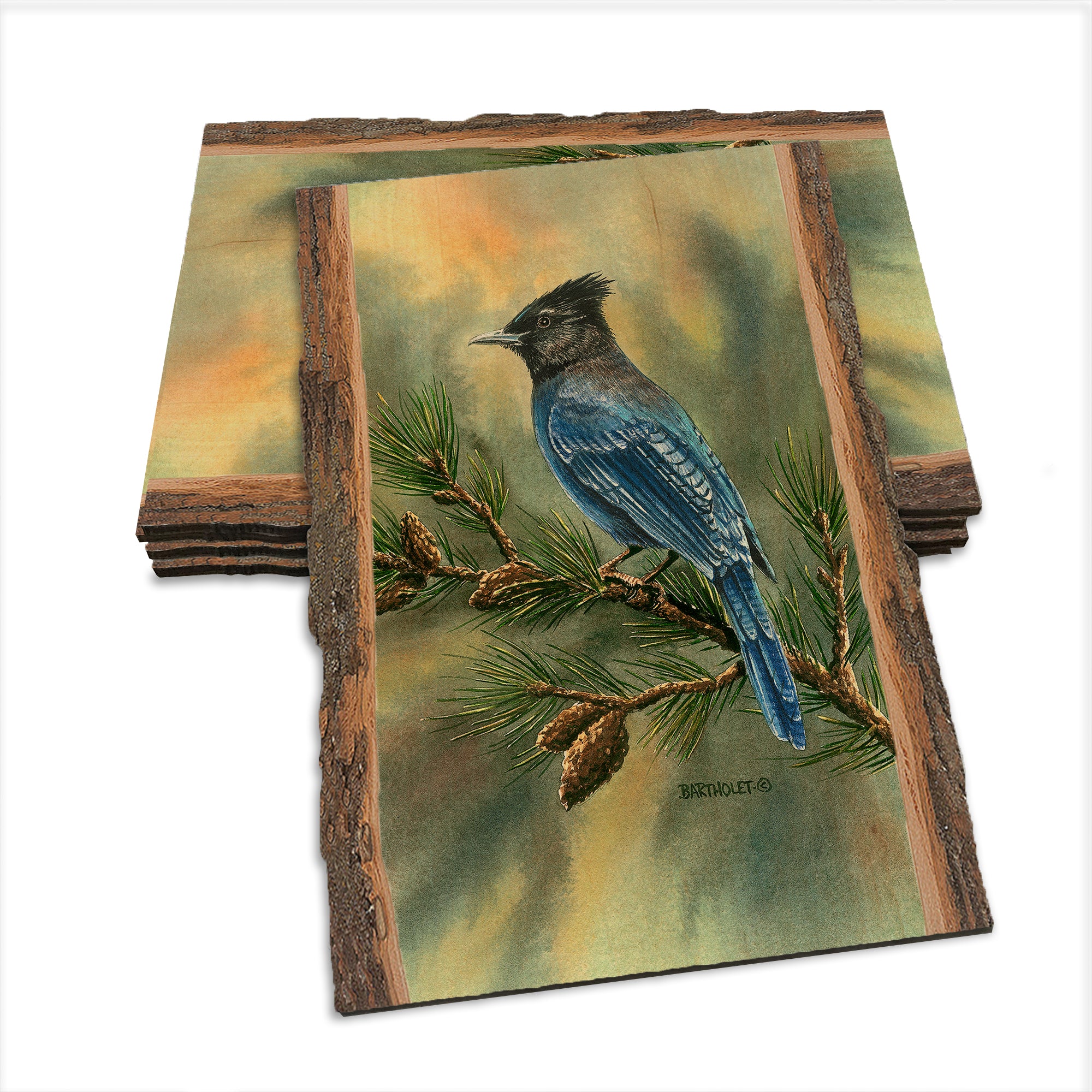 - Laser charred edge and colorful imagery to create a believable 'live edge'.