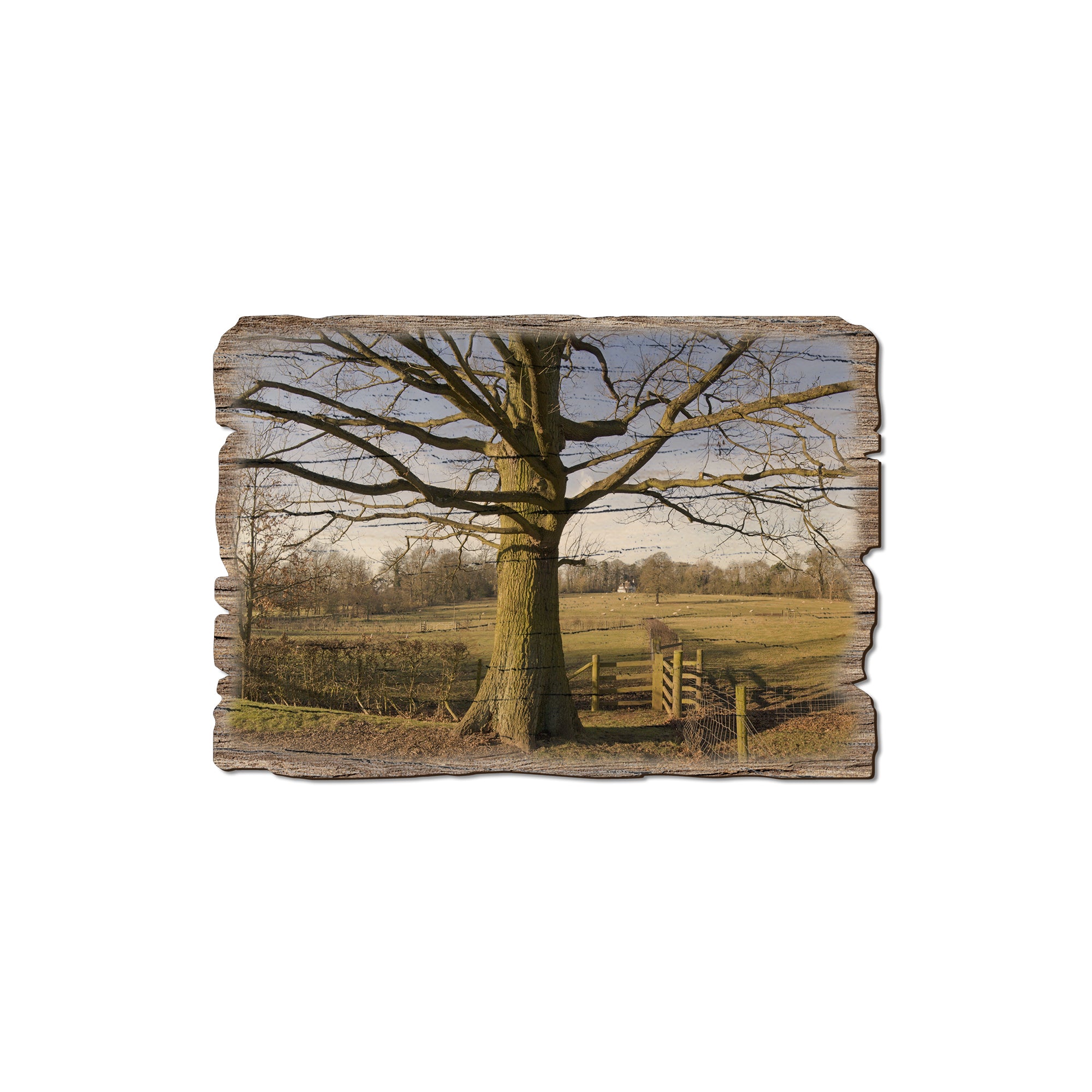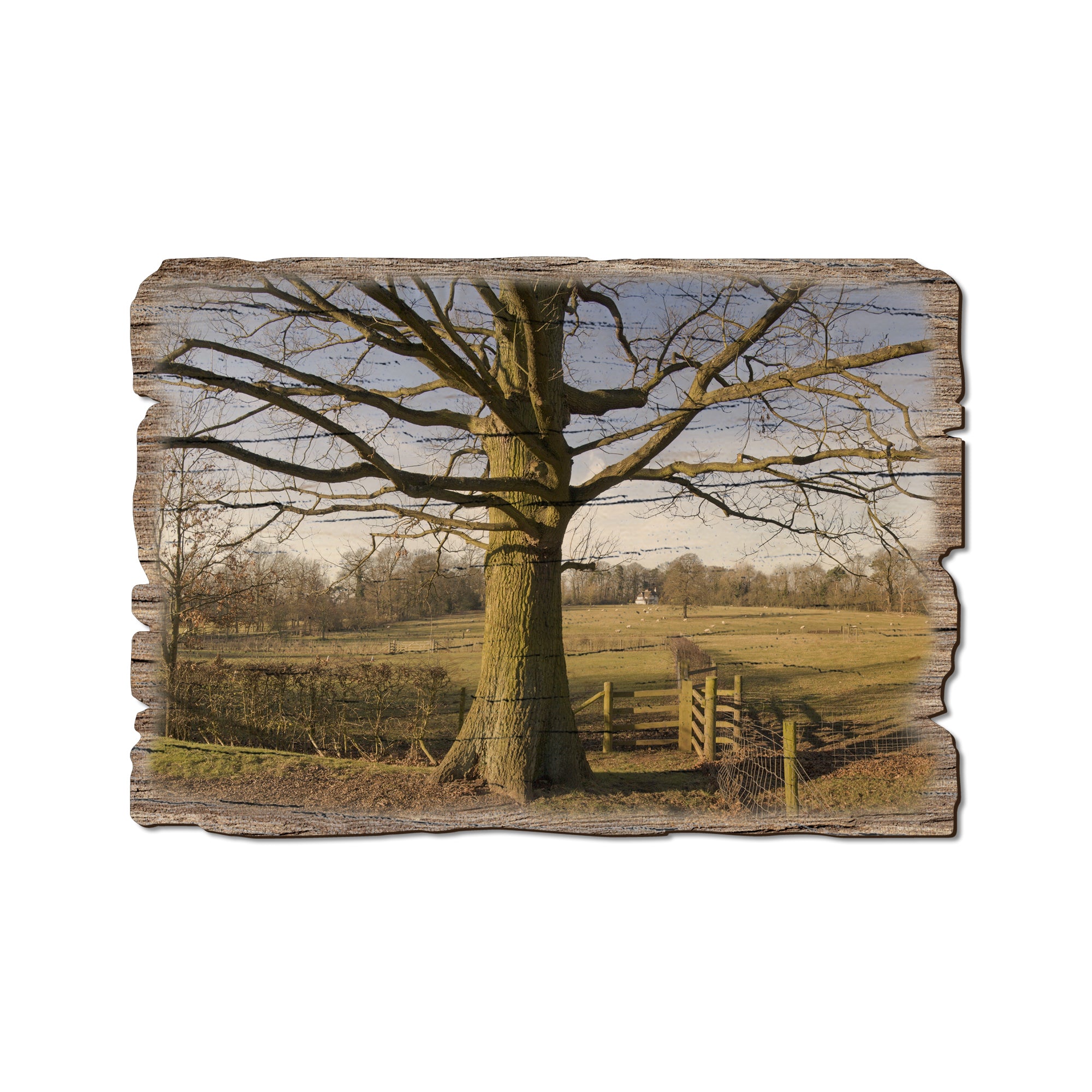 - Laser charred edge and colorful imagery creating a rustic and weathered look.