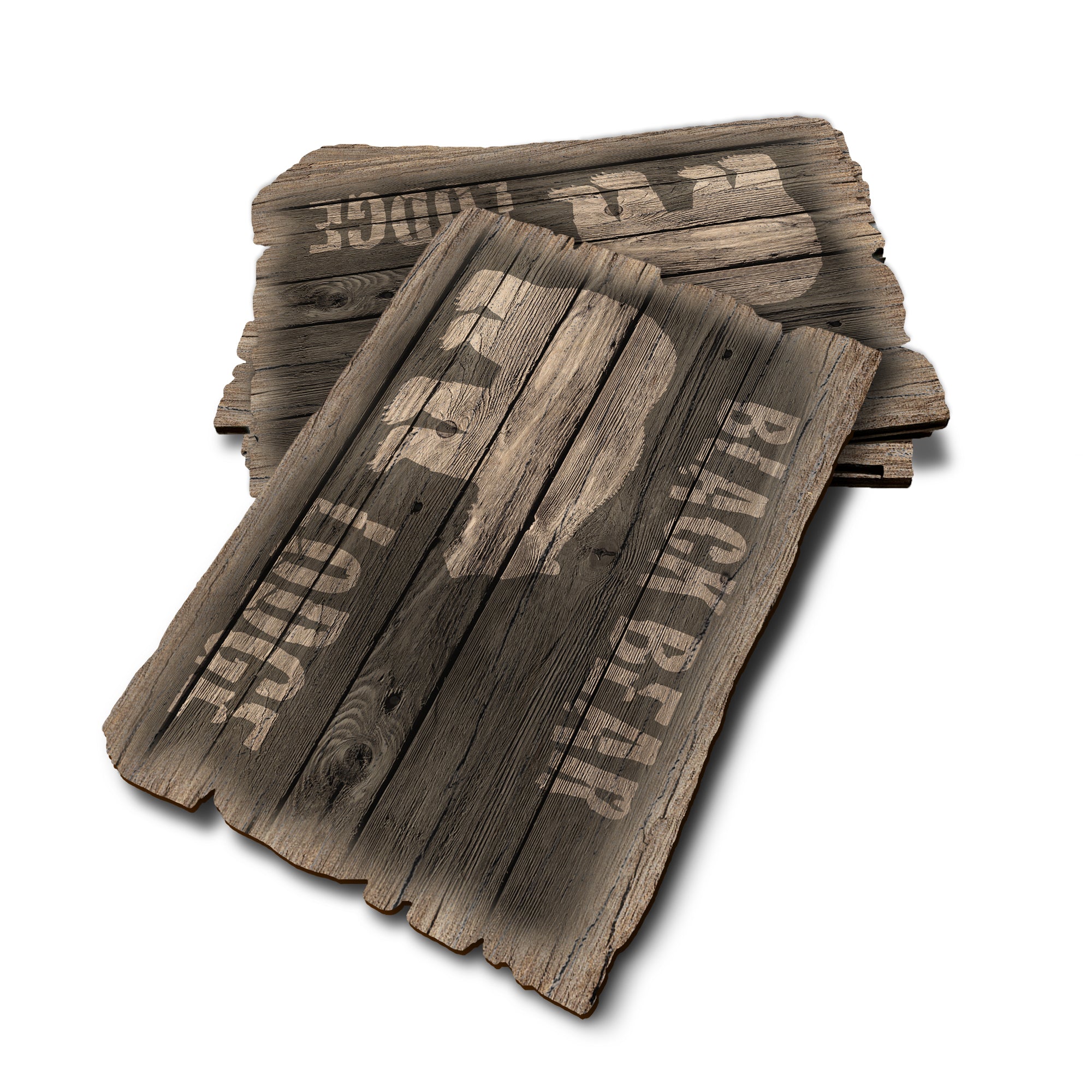 - Laser charred edge and colorful imagery creating arustic and weathered look.
