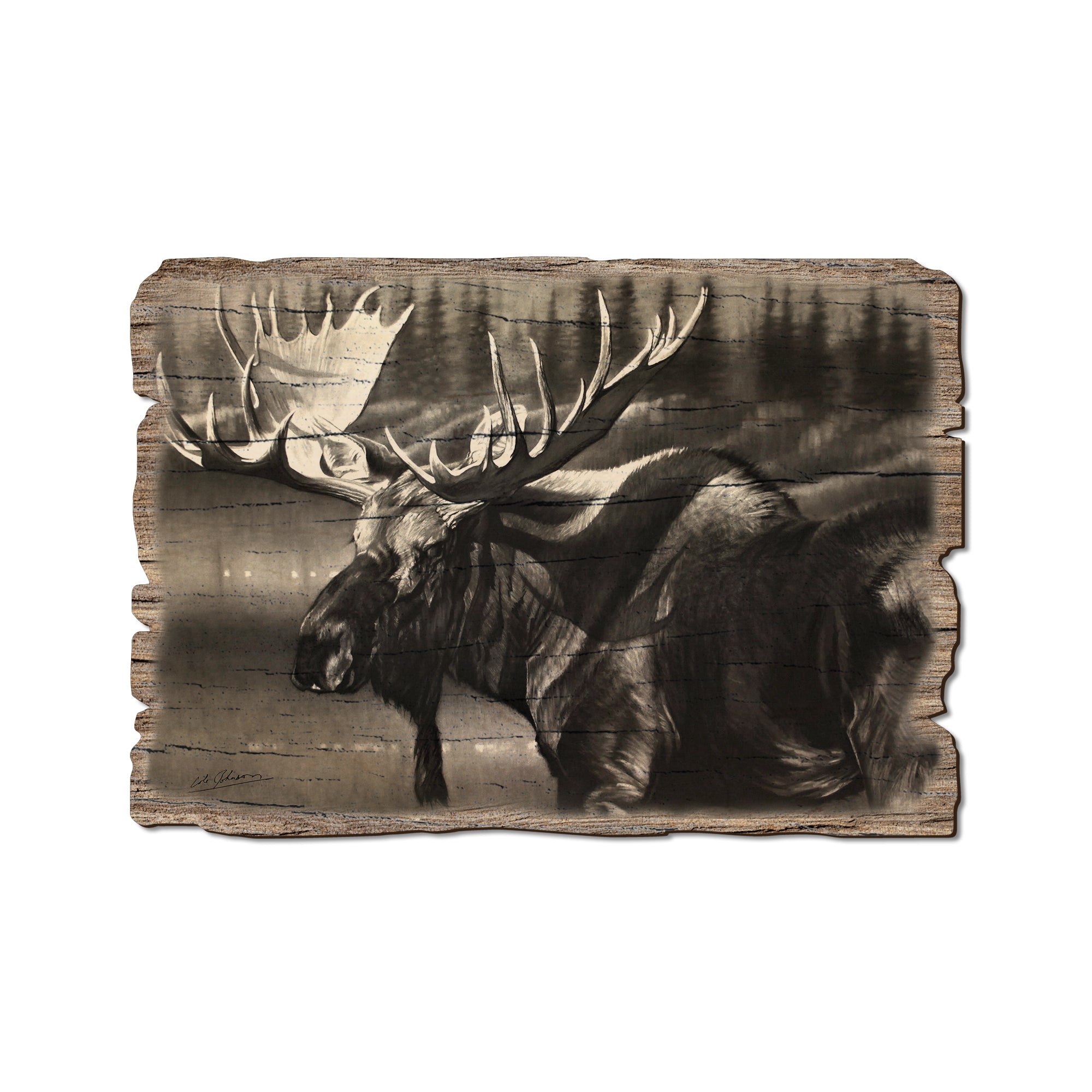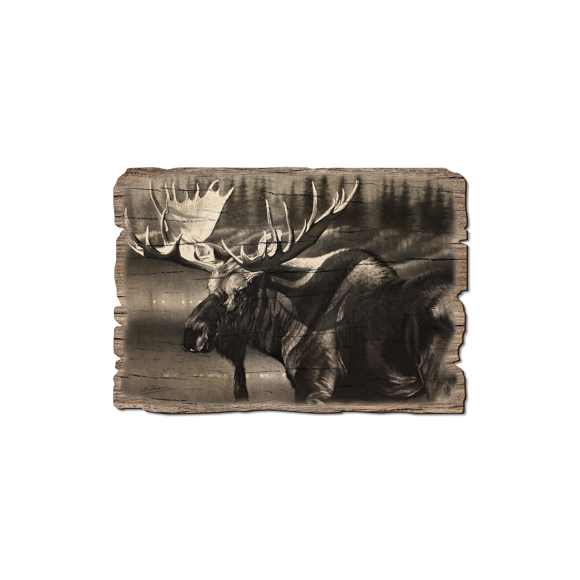 - Laser charred edge and colorful imagery creating arustic and weathered look.