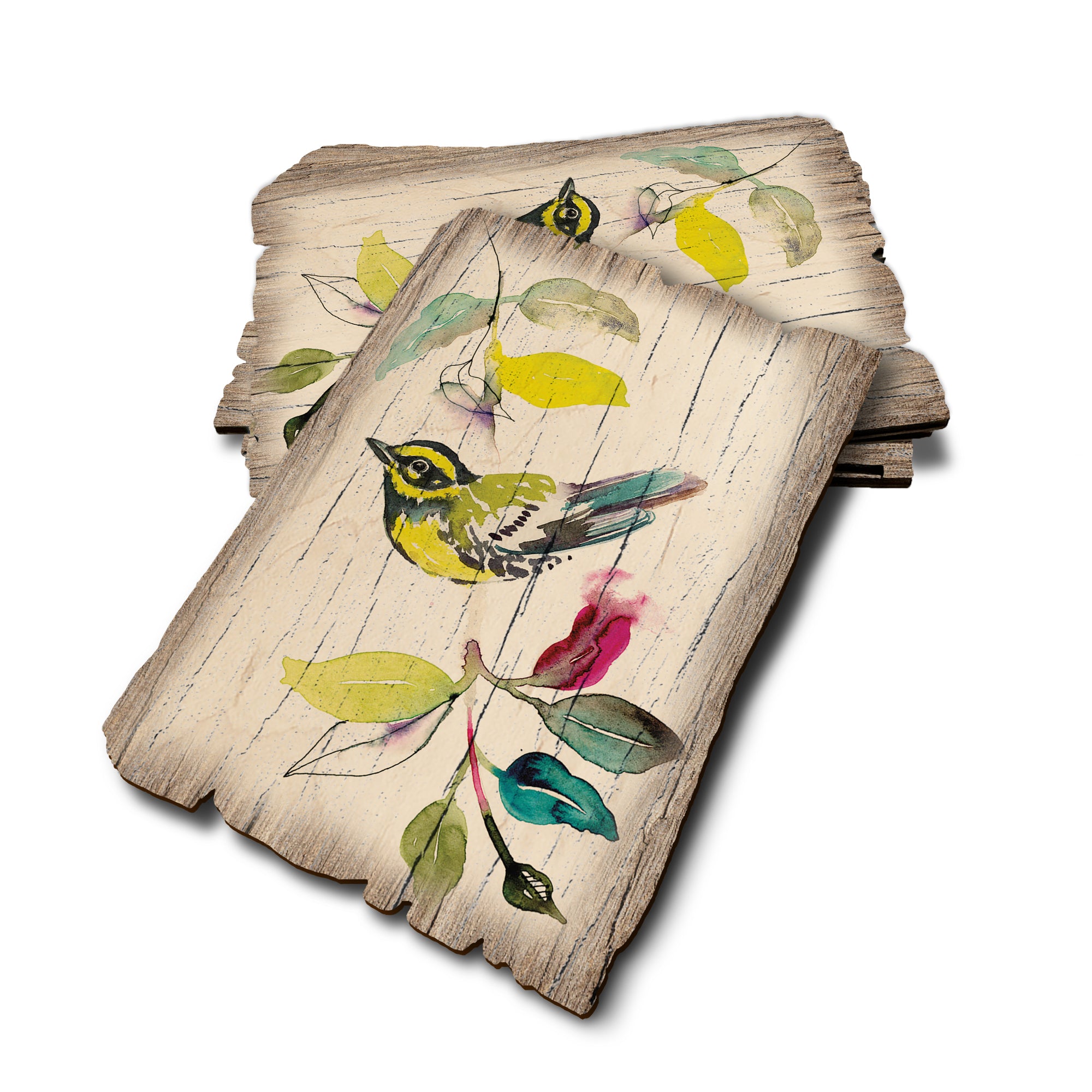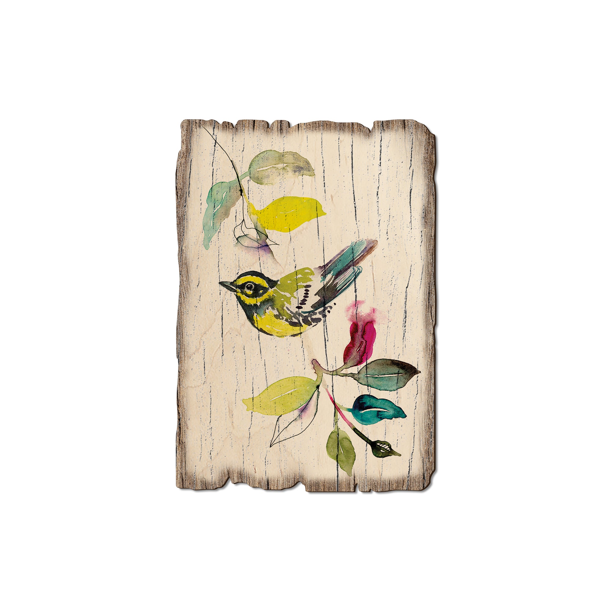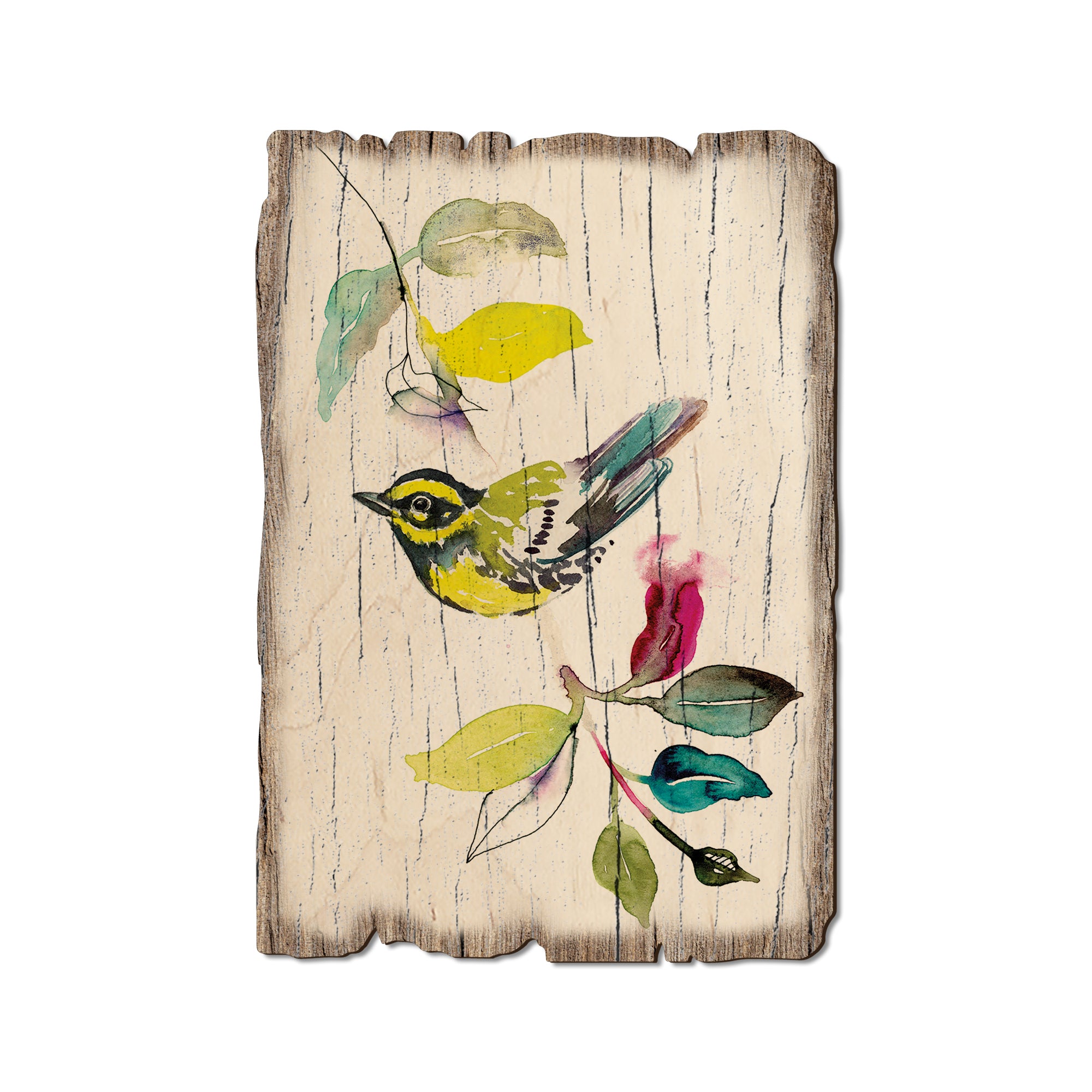 - Laser charred edge and colorful imagery creating arustic and weathered look.
