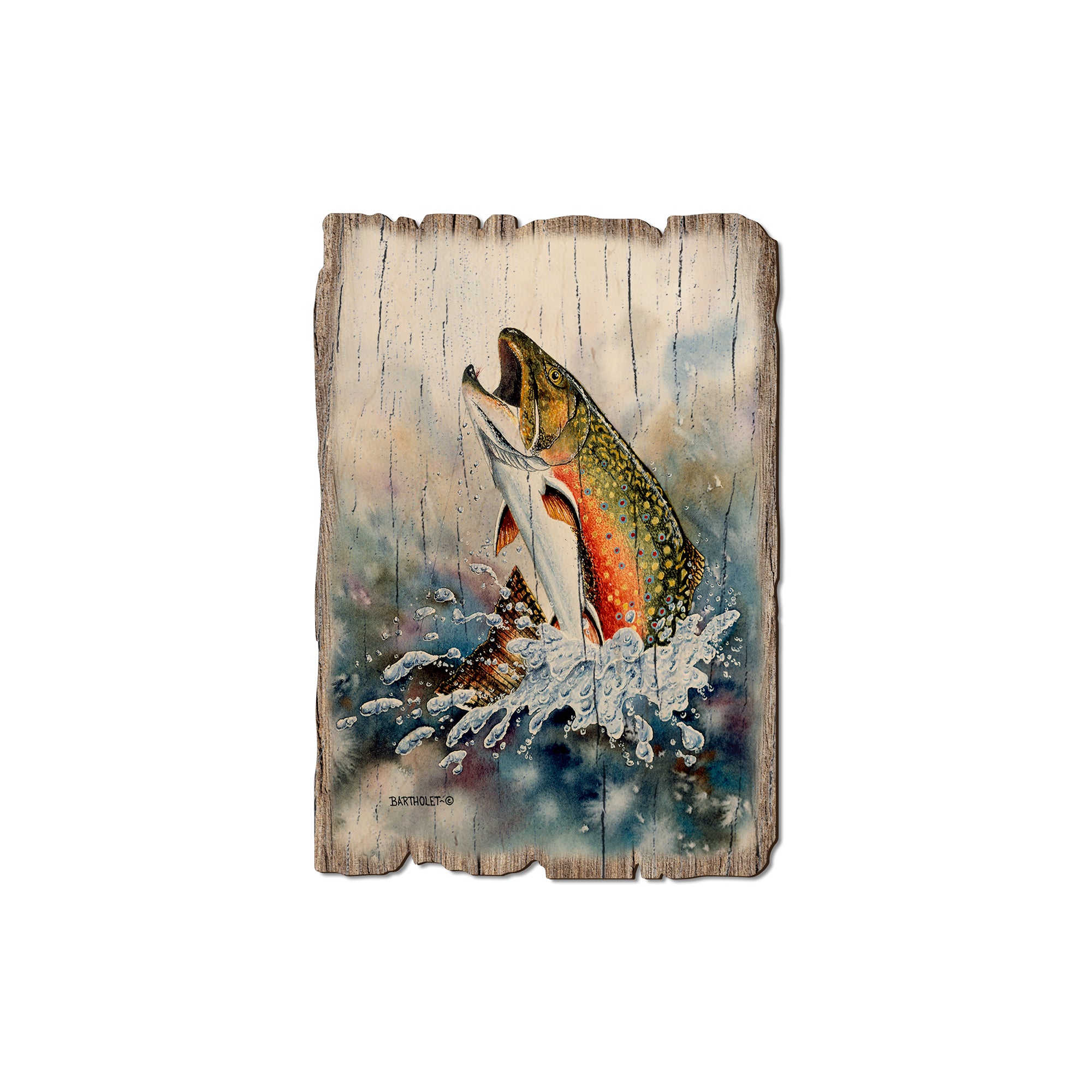 - Laser charred edge and colorful imagery creating arustic and weathered look.