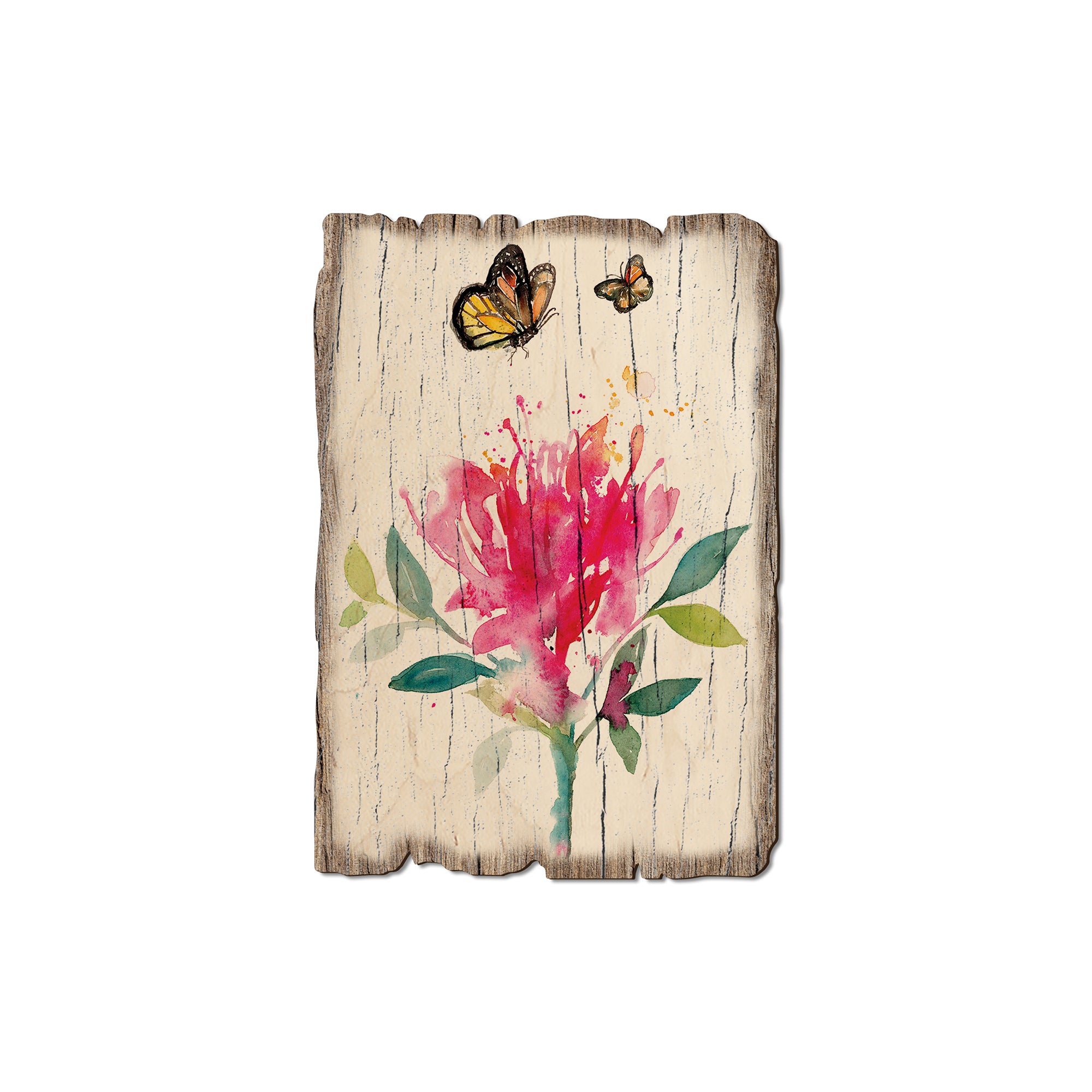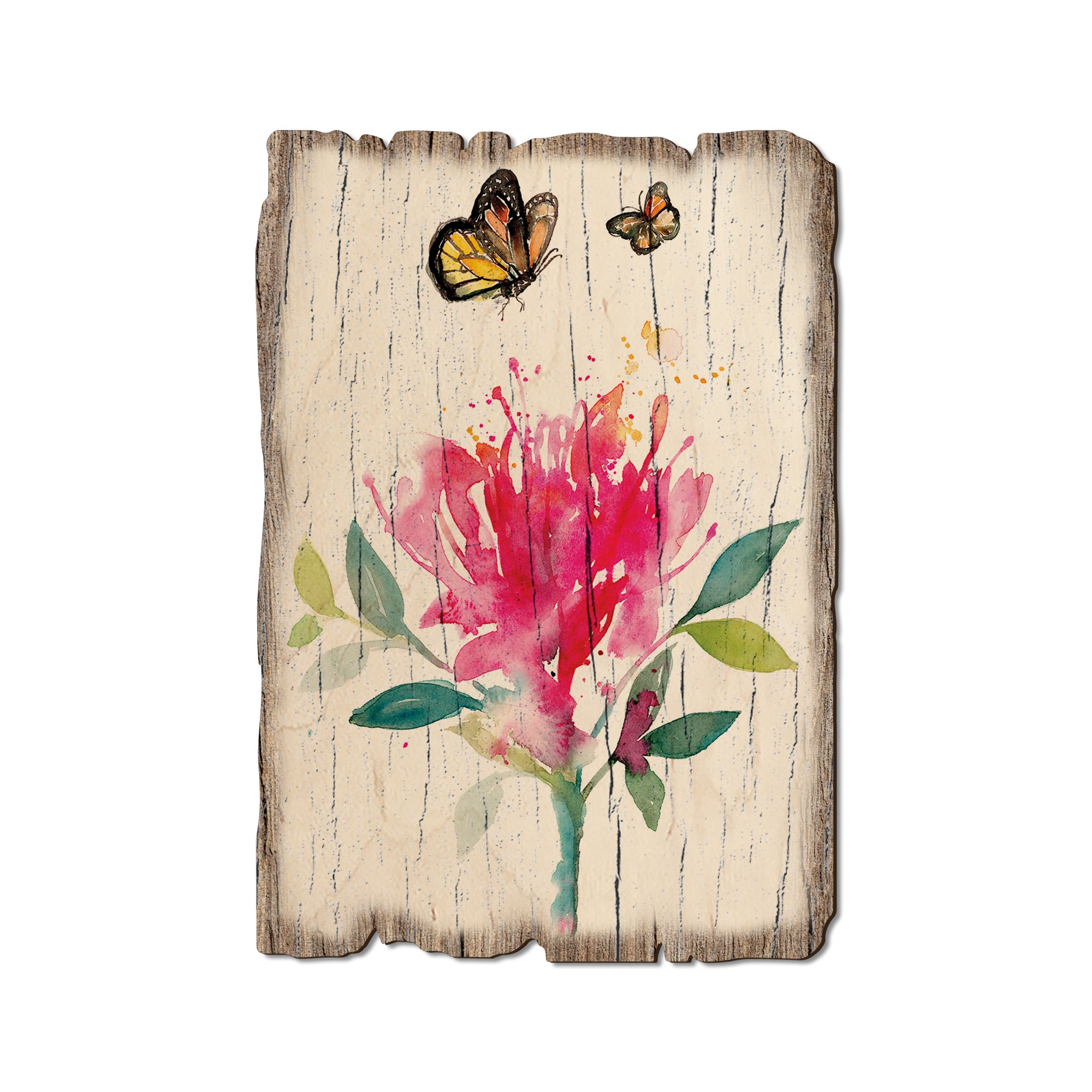 - Laser charred edge and colorful imagery creating arustic and weathered look.