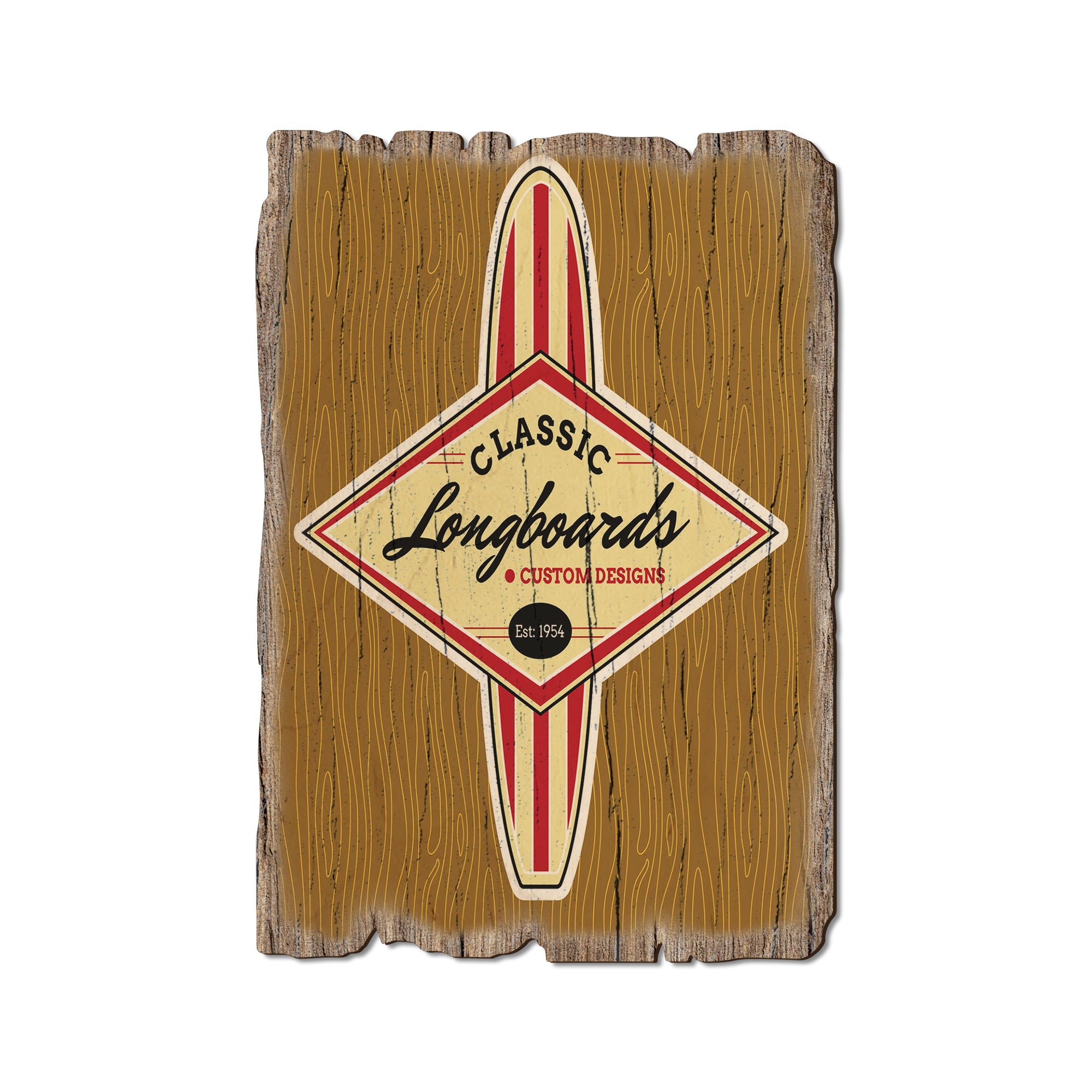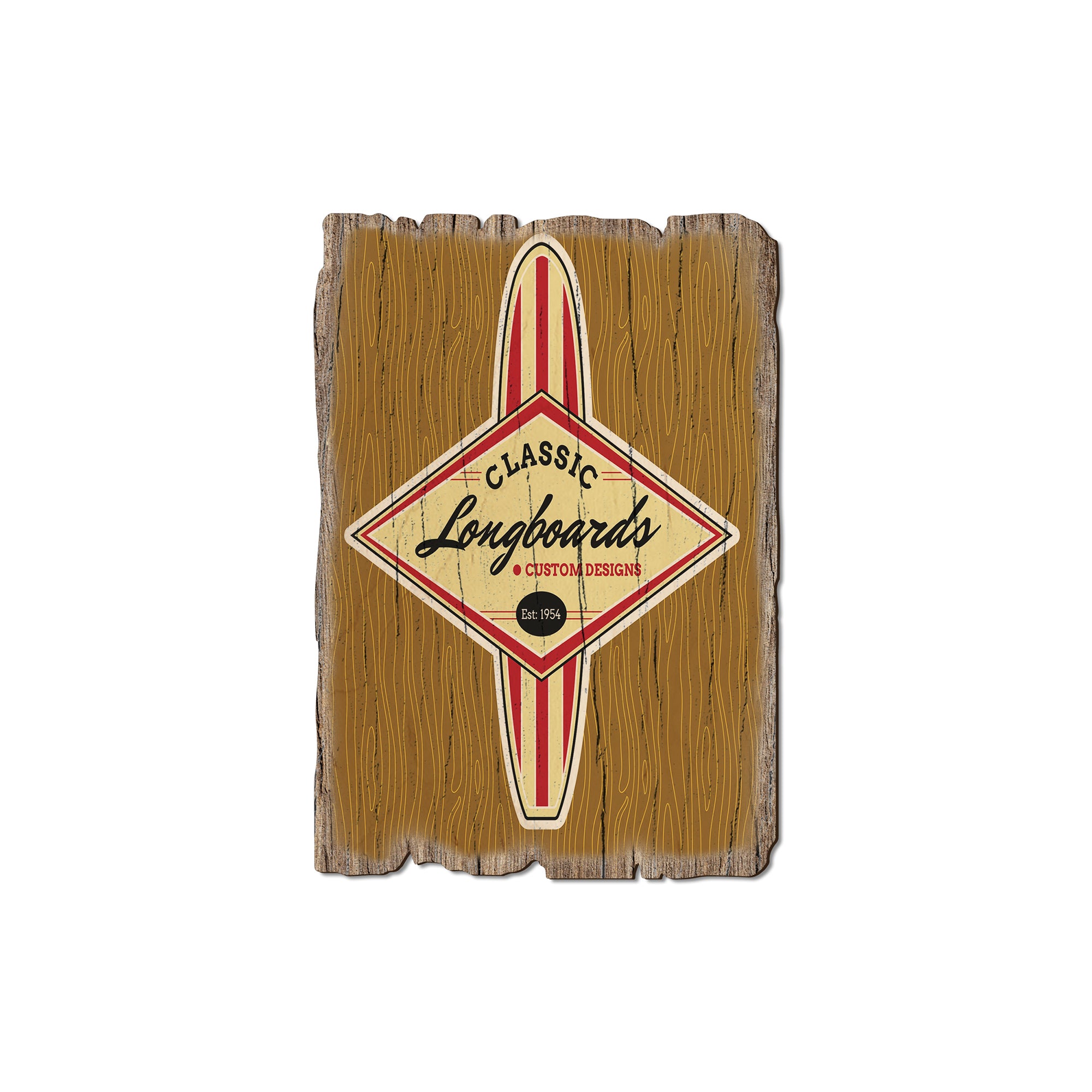 - Laser charred edge and colorful imagery creating arustic and weathered look.