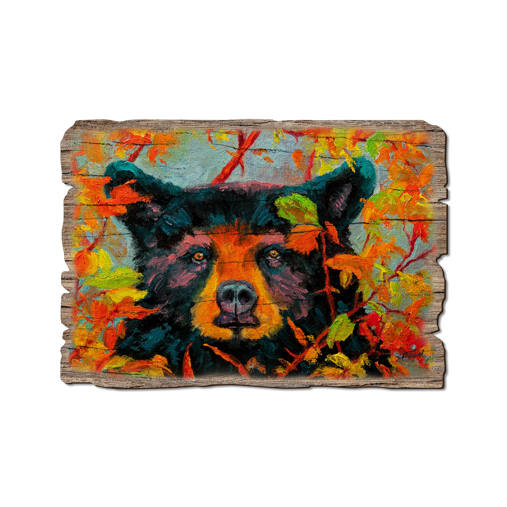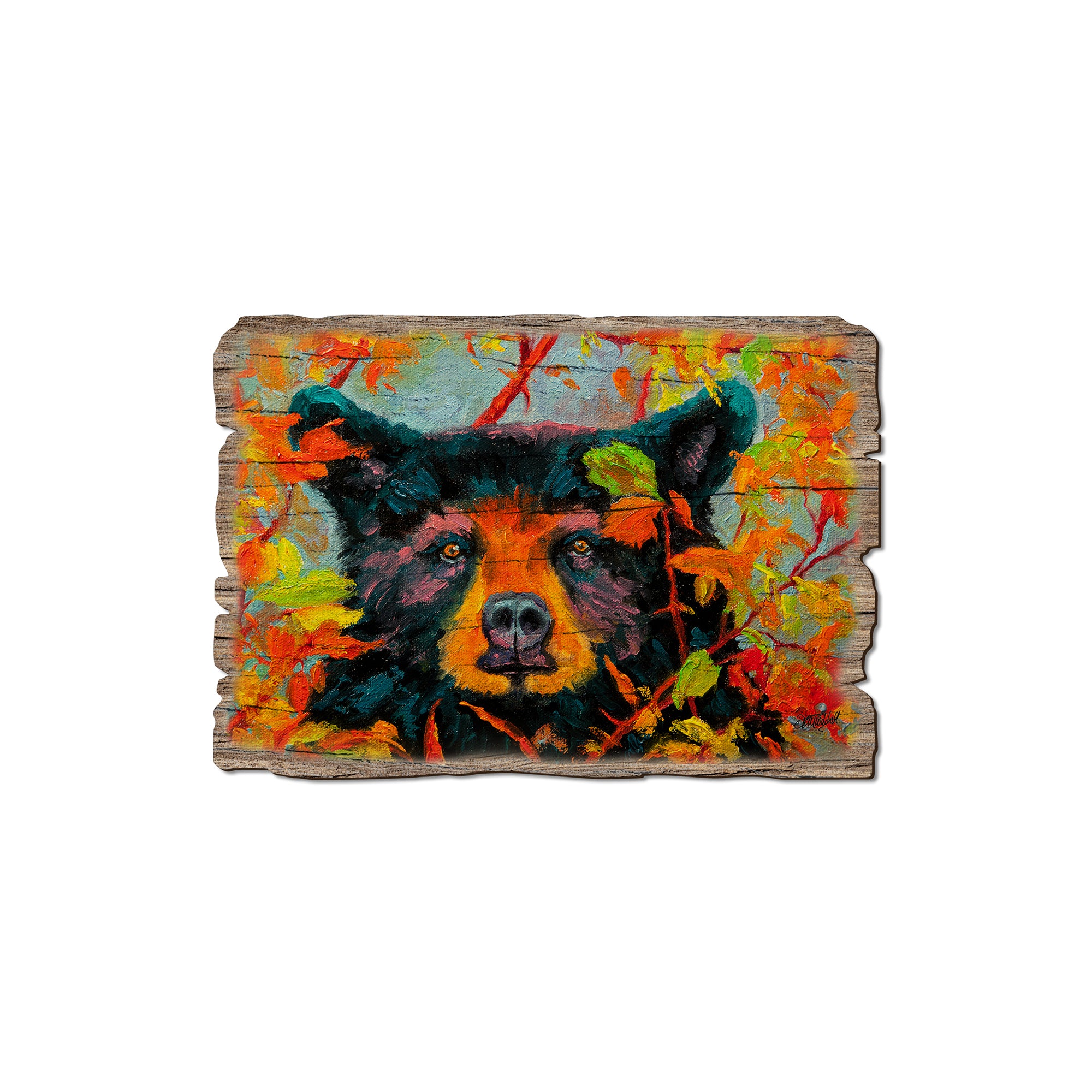 - Laser charred edge and colorful imagery creating arustic and weathered look.