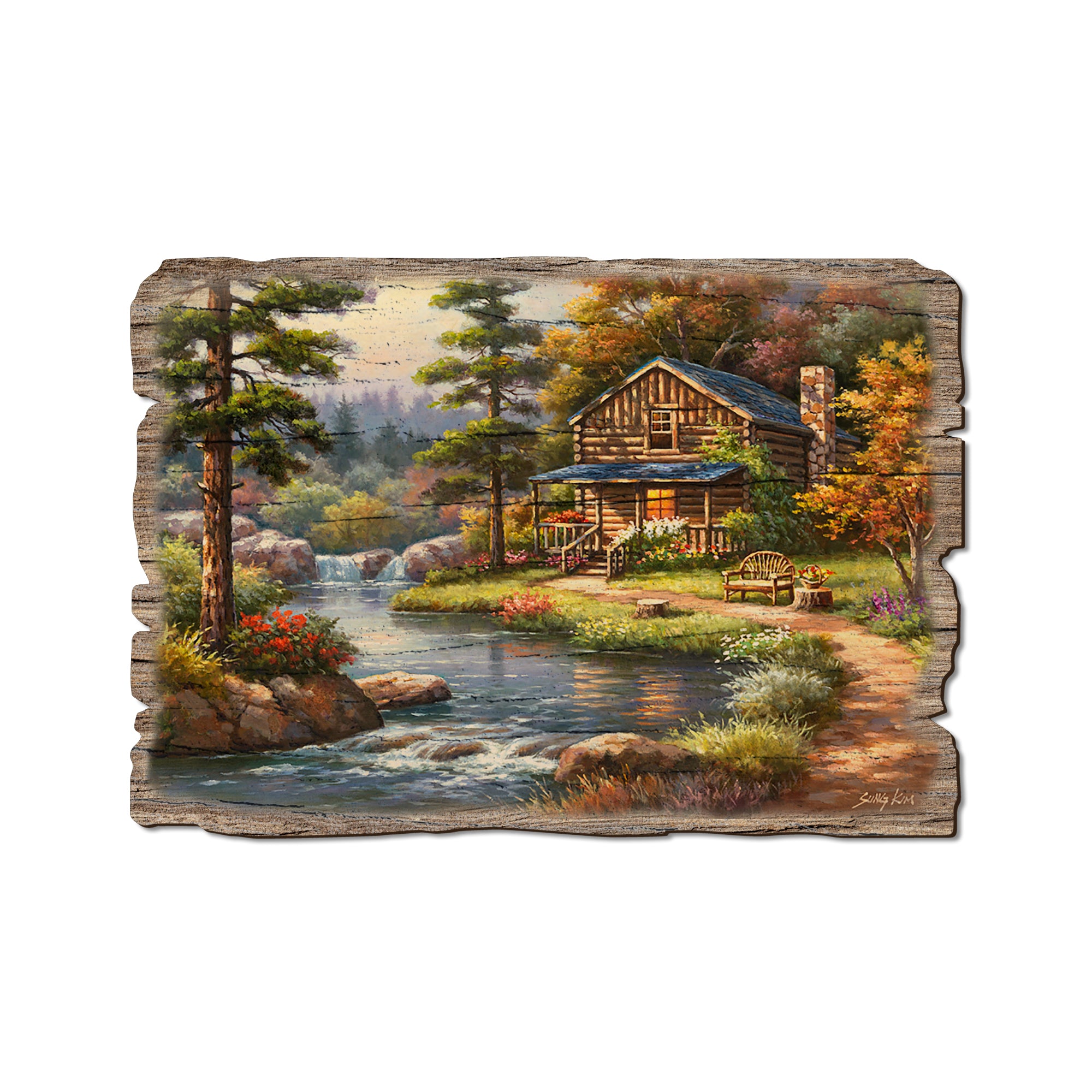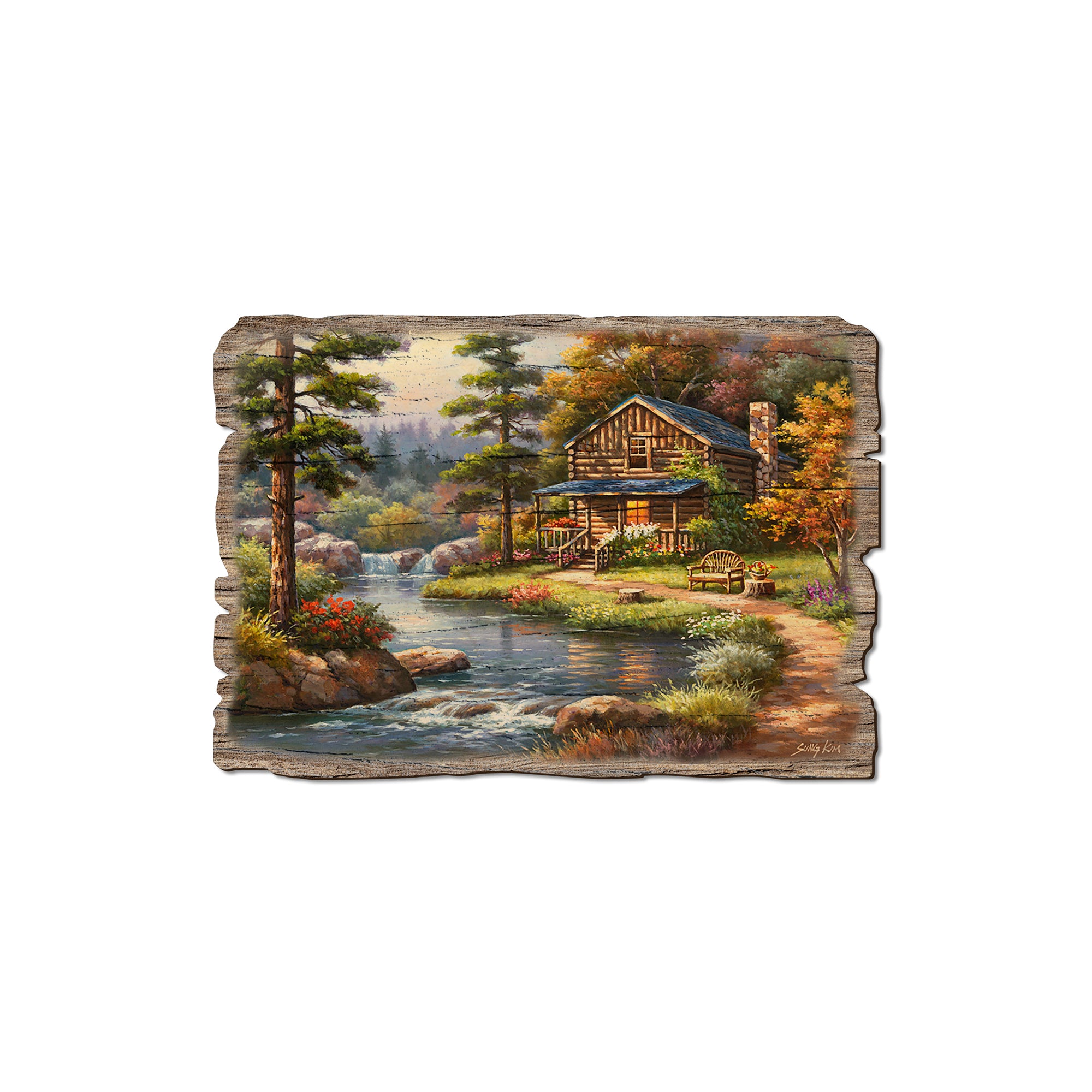 • Laser charred edge and colorful imagery creating arustic and weathered look.