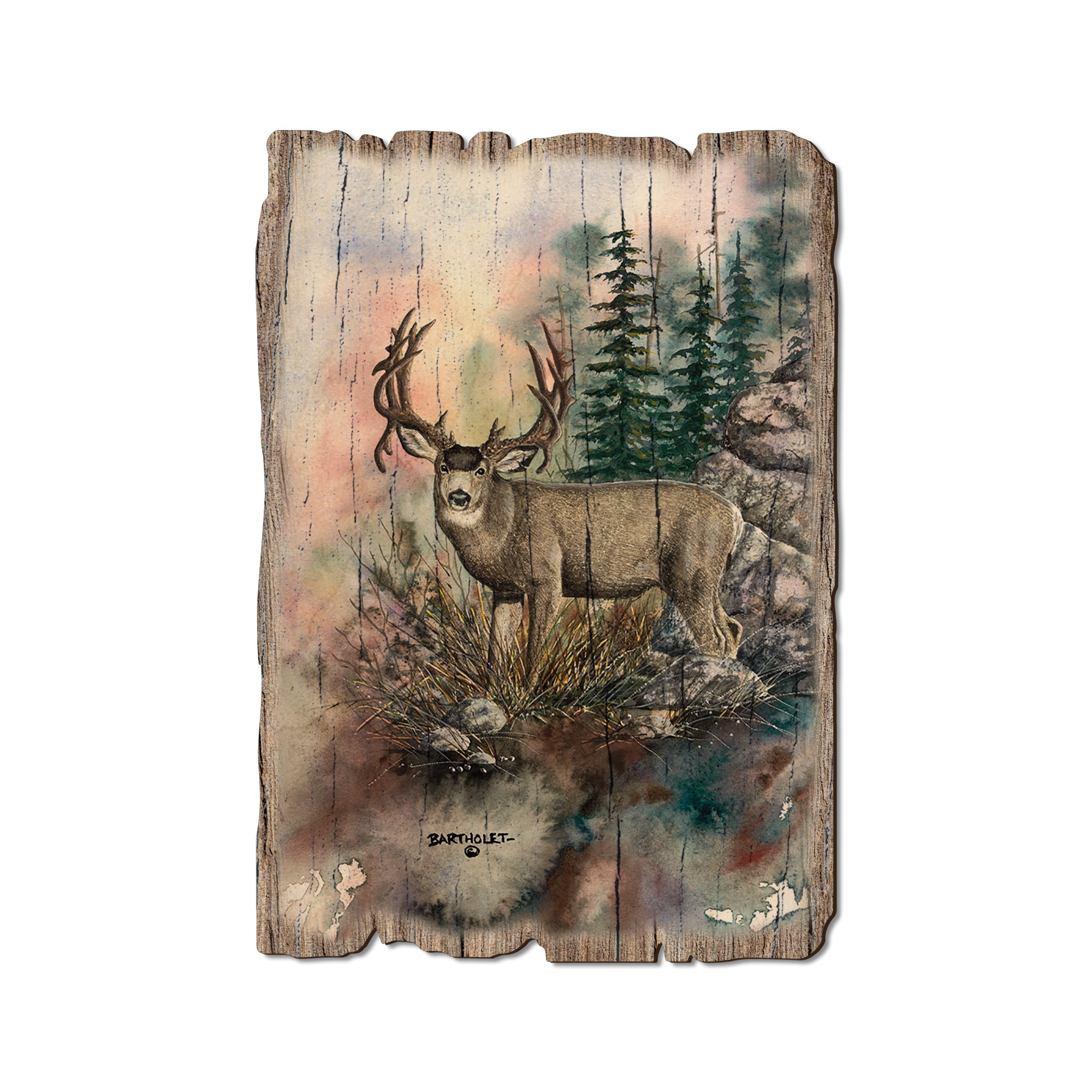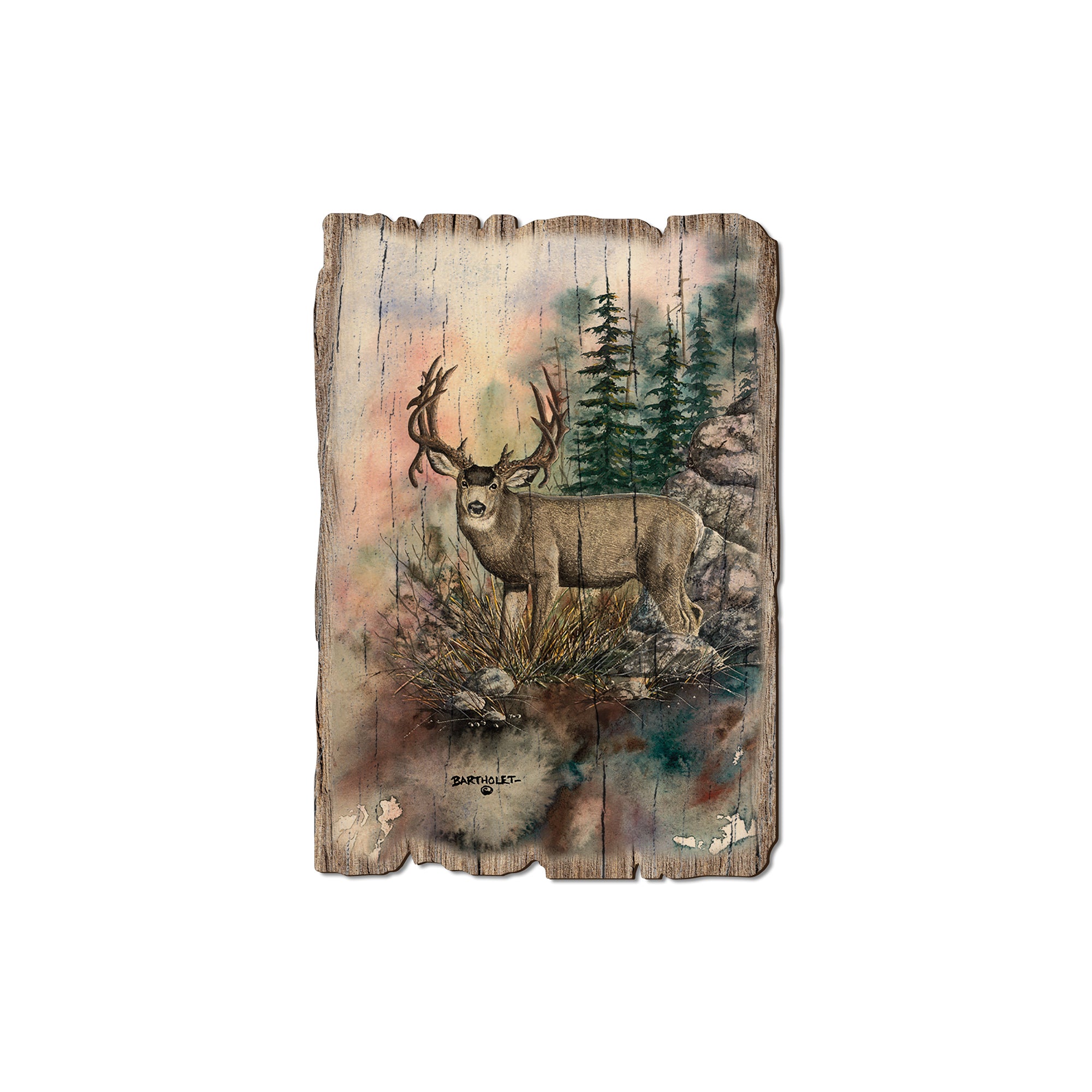 - Laser charred edge and colorful imagery creating arustic and weathered look.