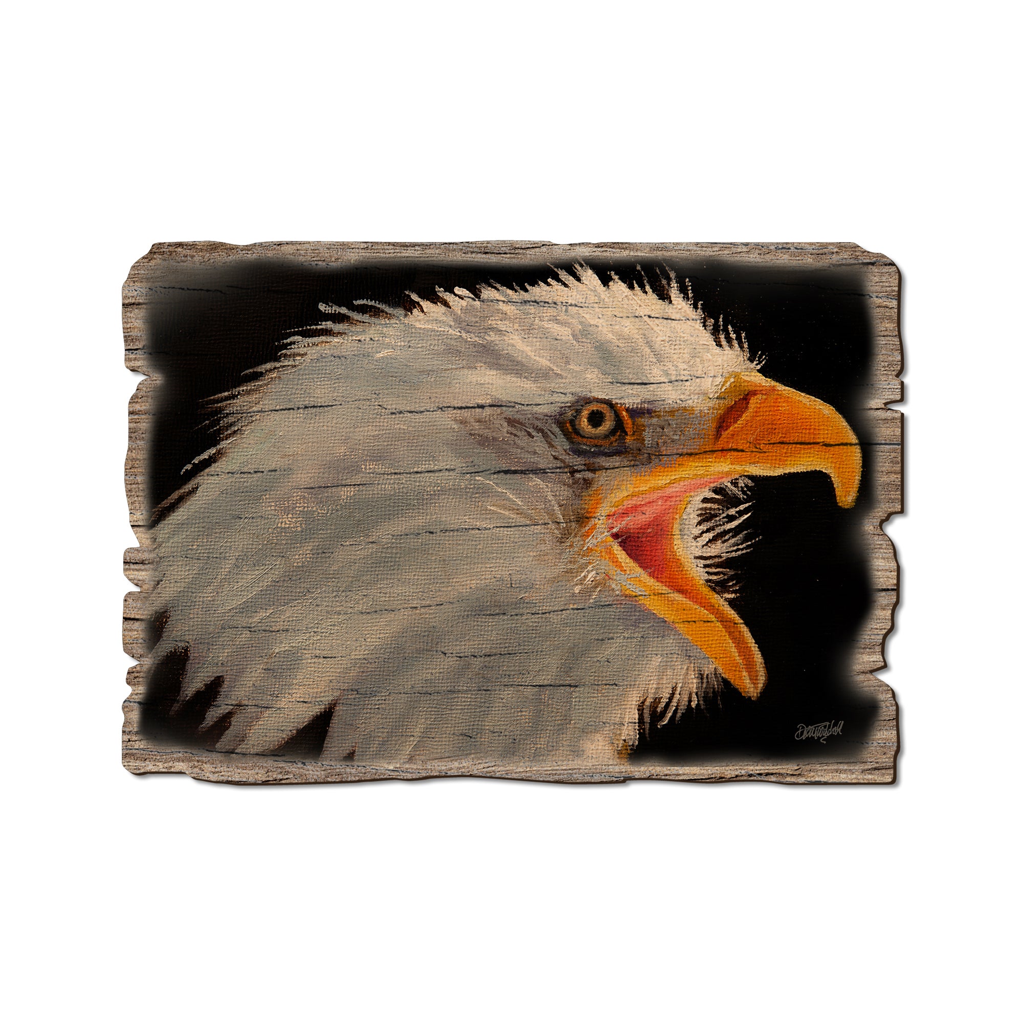 - Laser charred edge and colorful imagery creating arustic and weathered look.