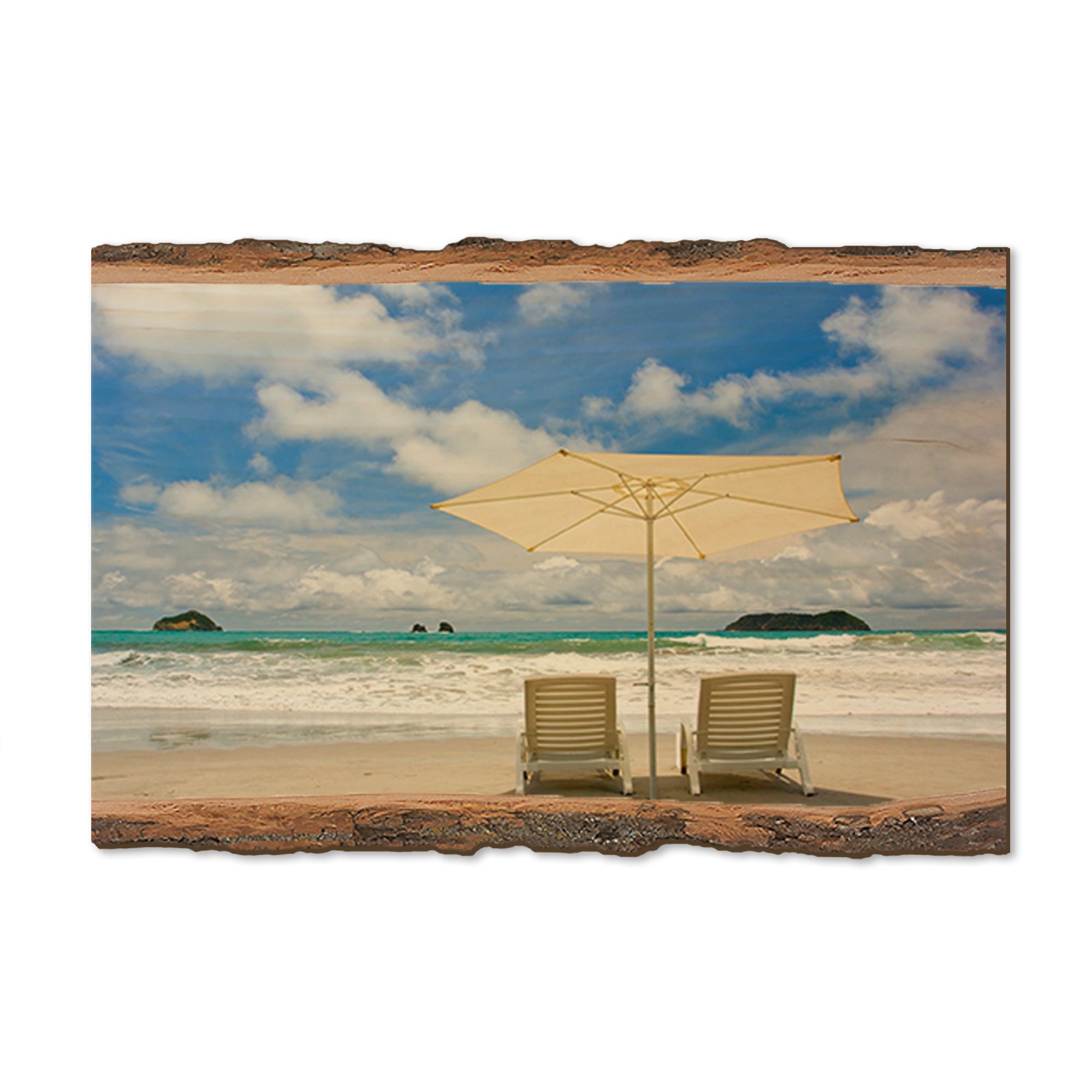 - Laser charred edge and colorful imagery to create a believable 'live edge'.