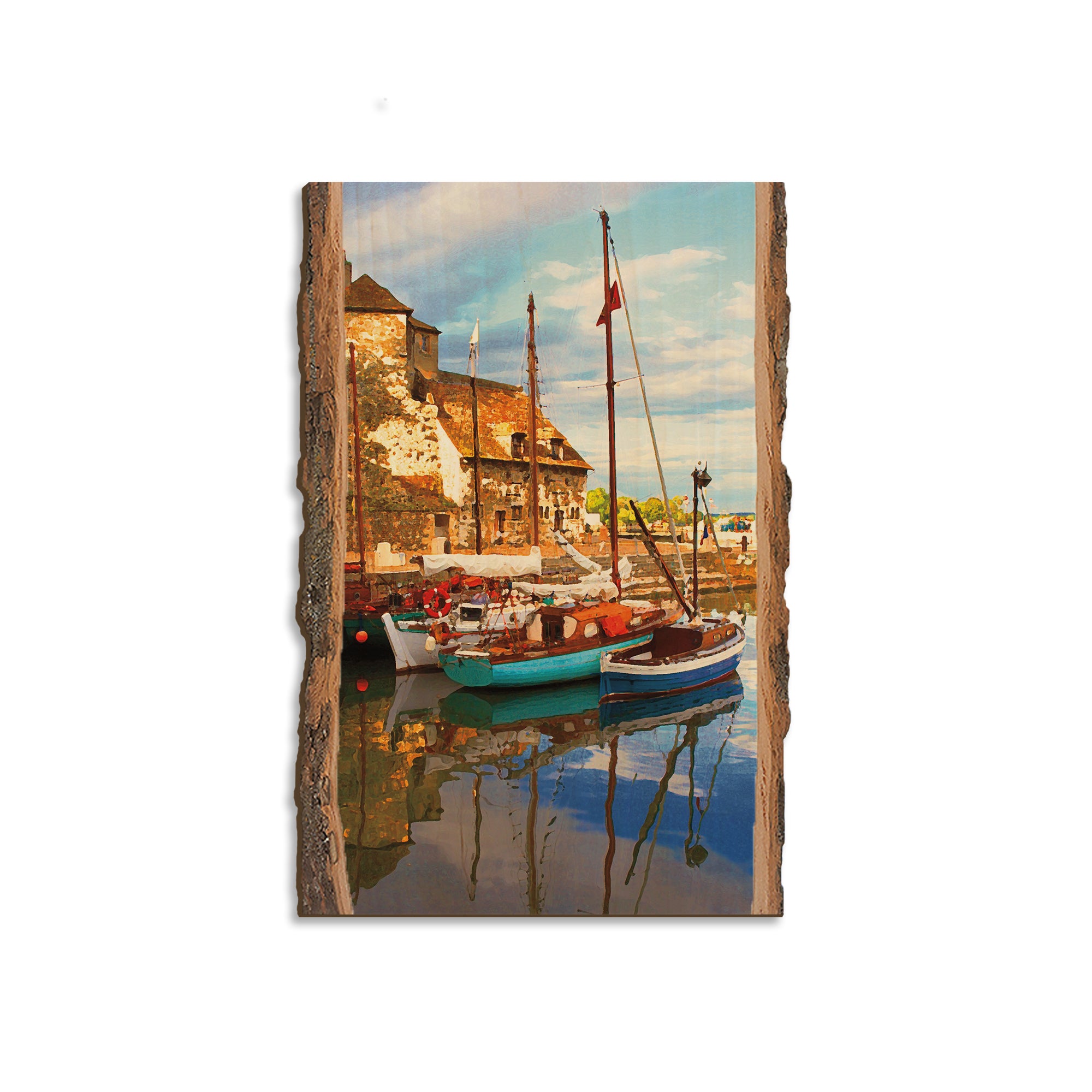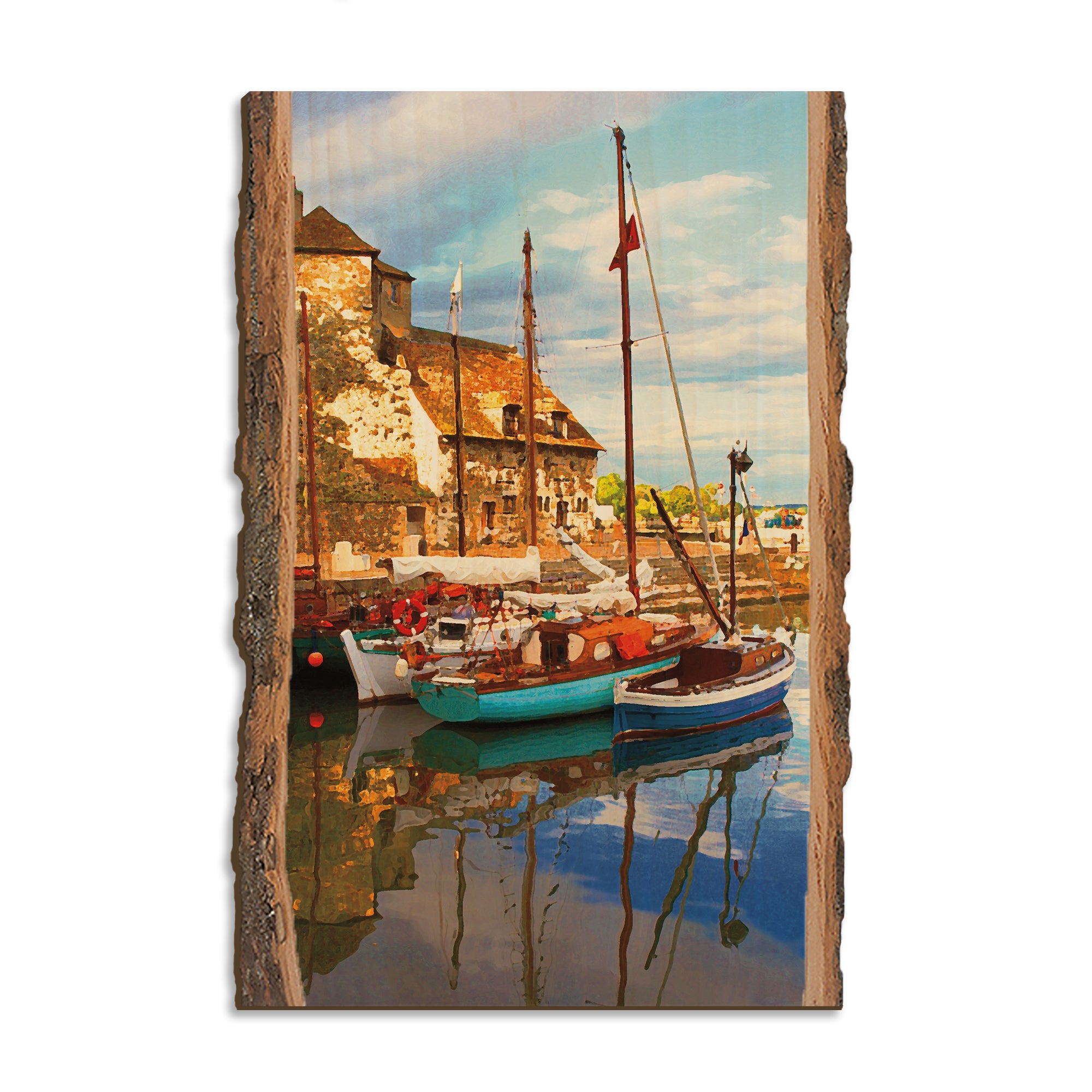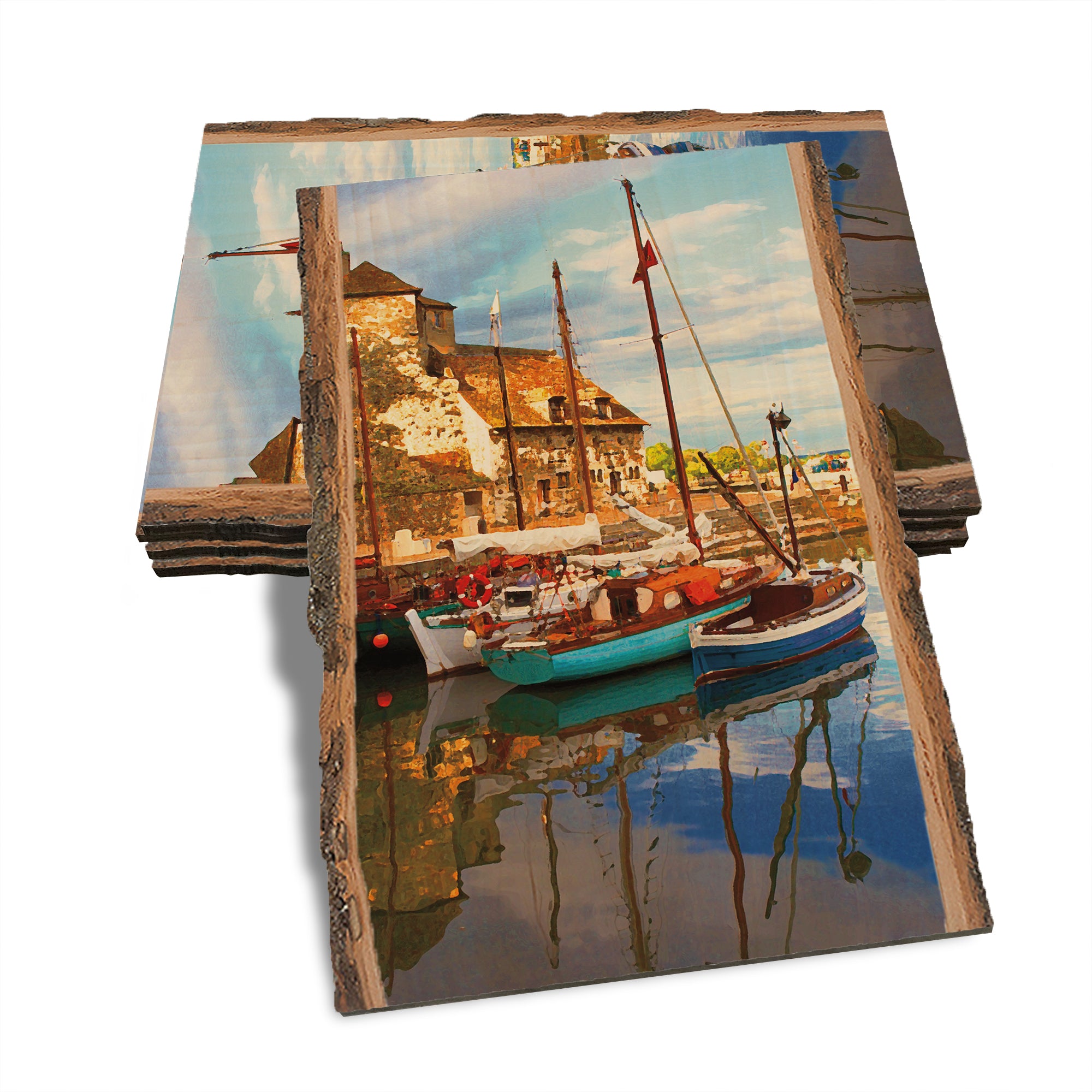 • Laser charred edge and colorful imagery to create a believable 'live edge'.