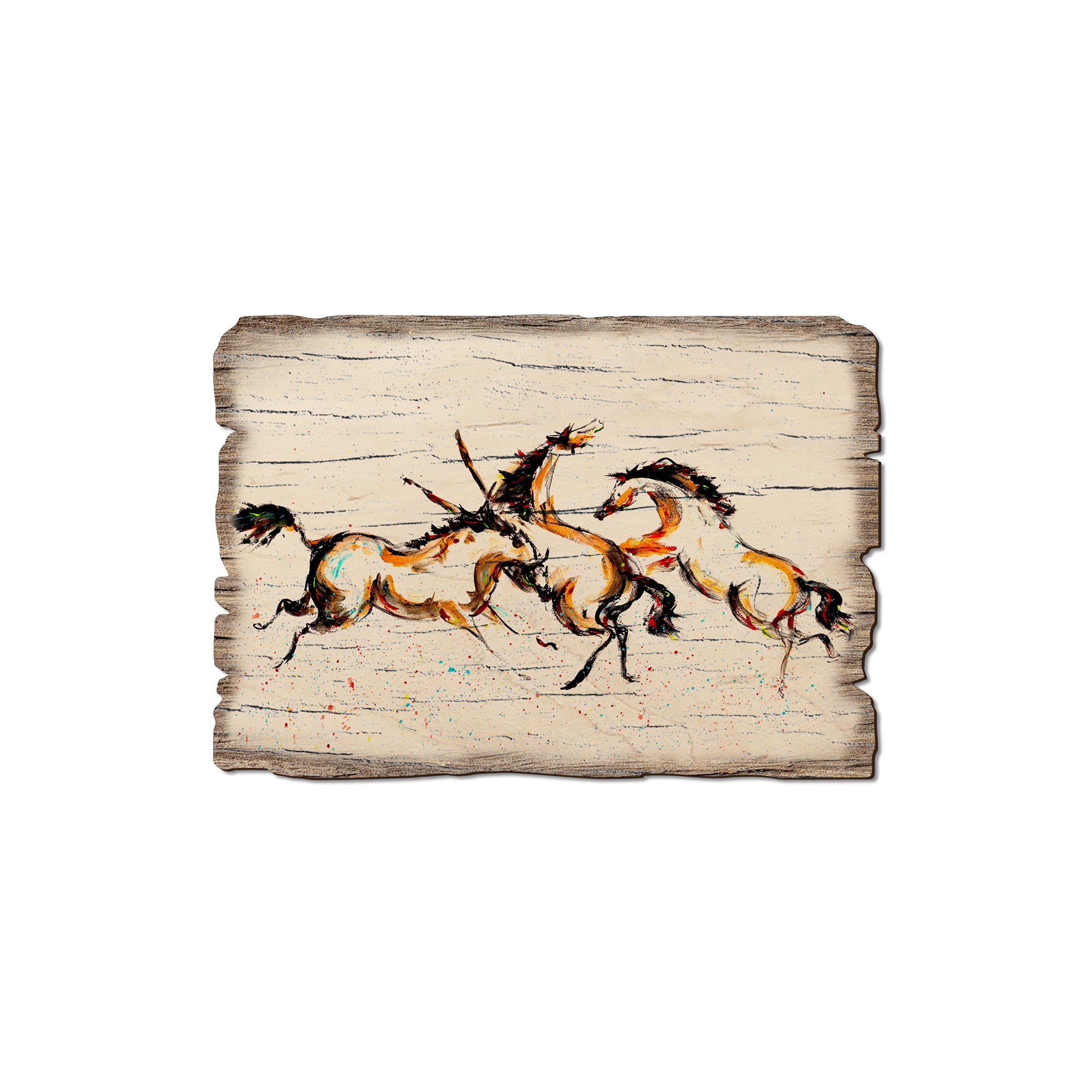 - Laser charred edge and colorful imagery creating arustic and weathered look.
