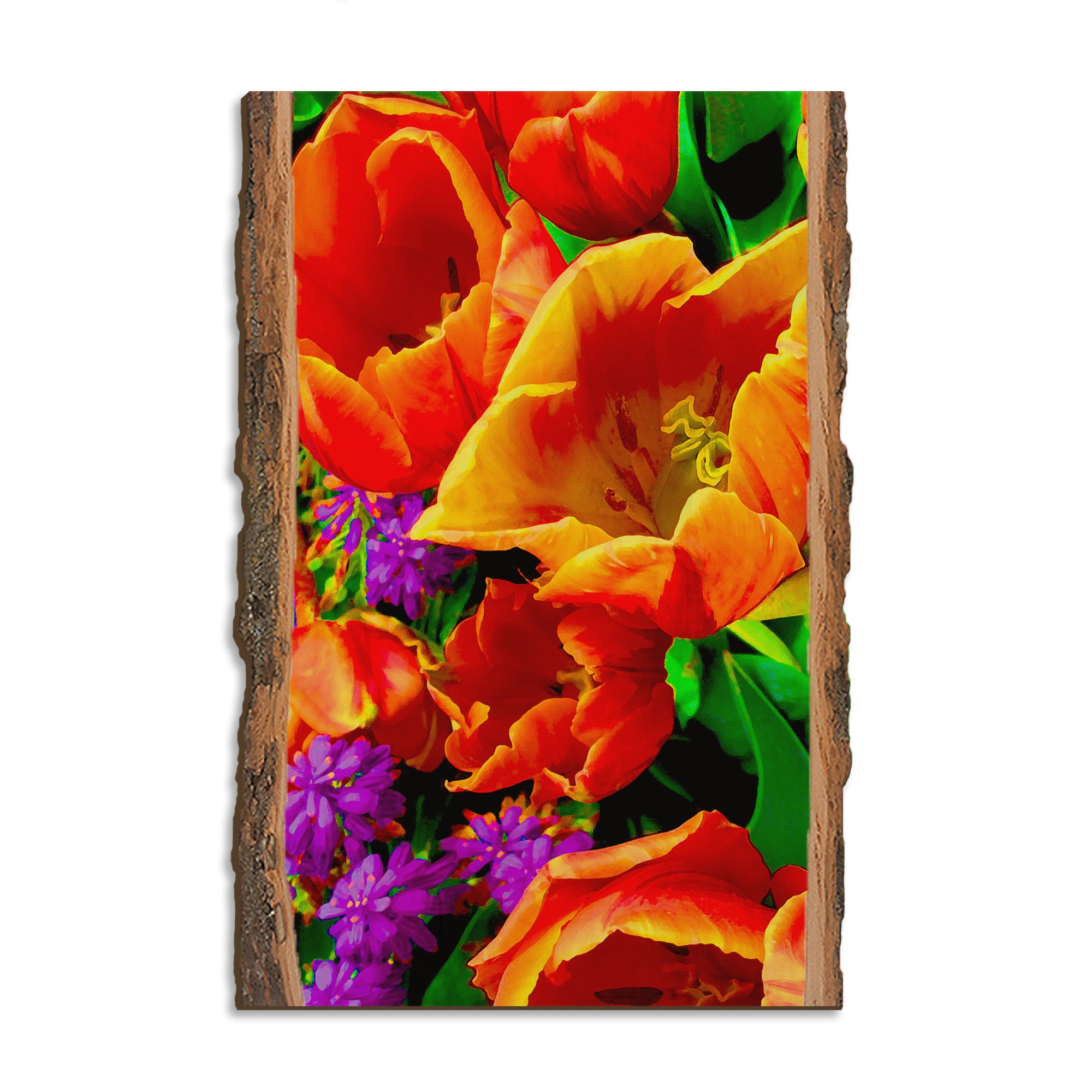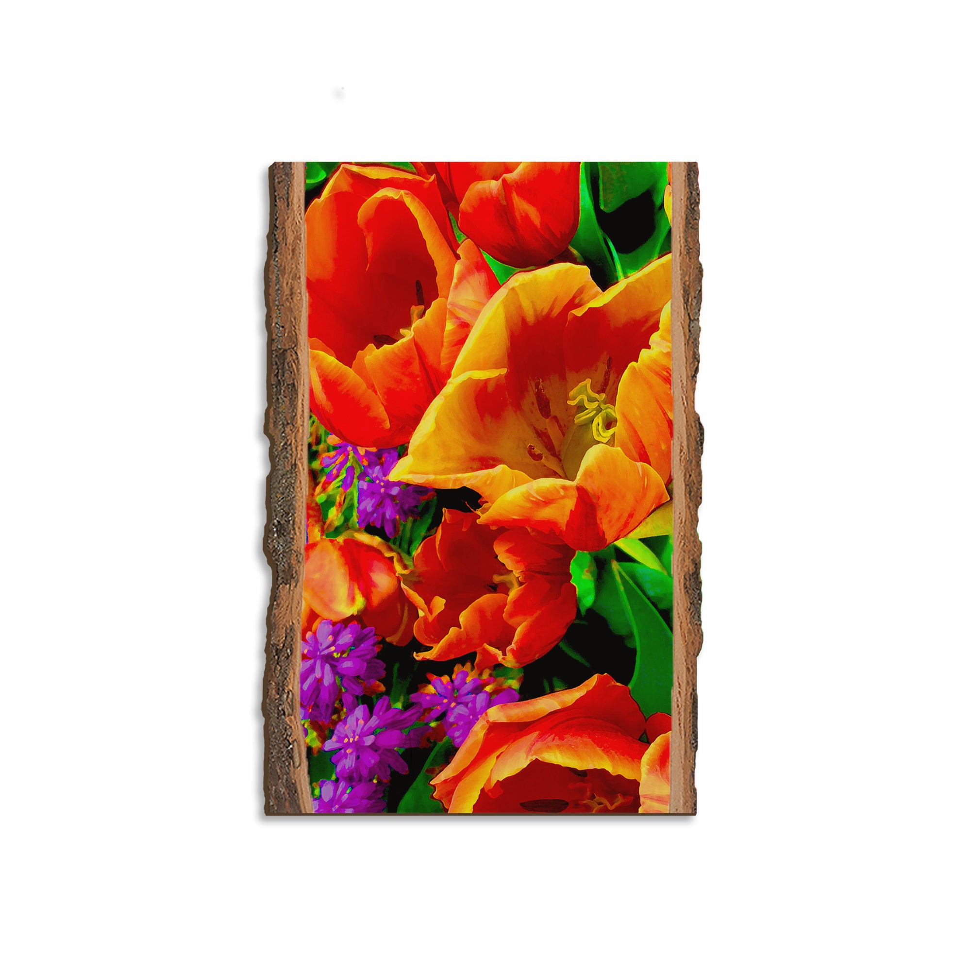 - Laser charred edge and colorful imagery to create a believable 'live edge'.