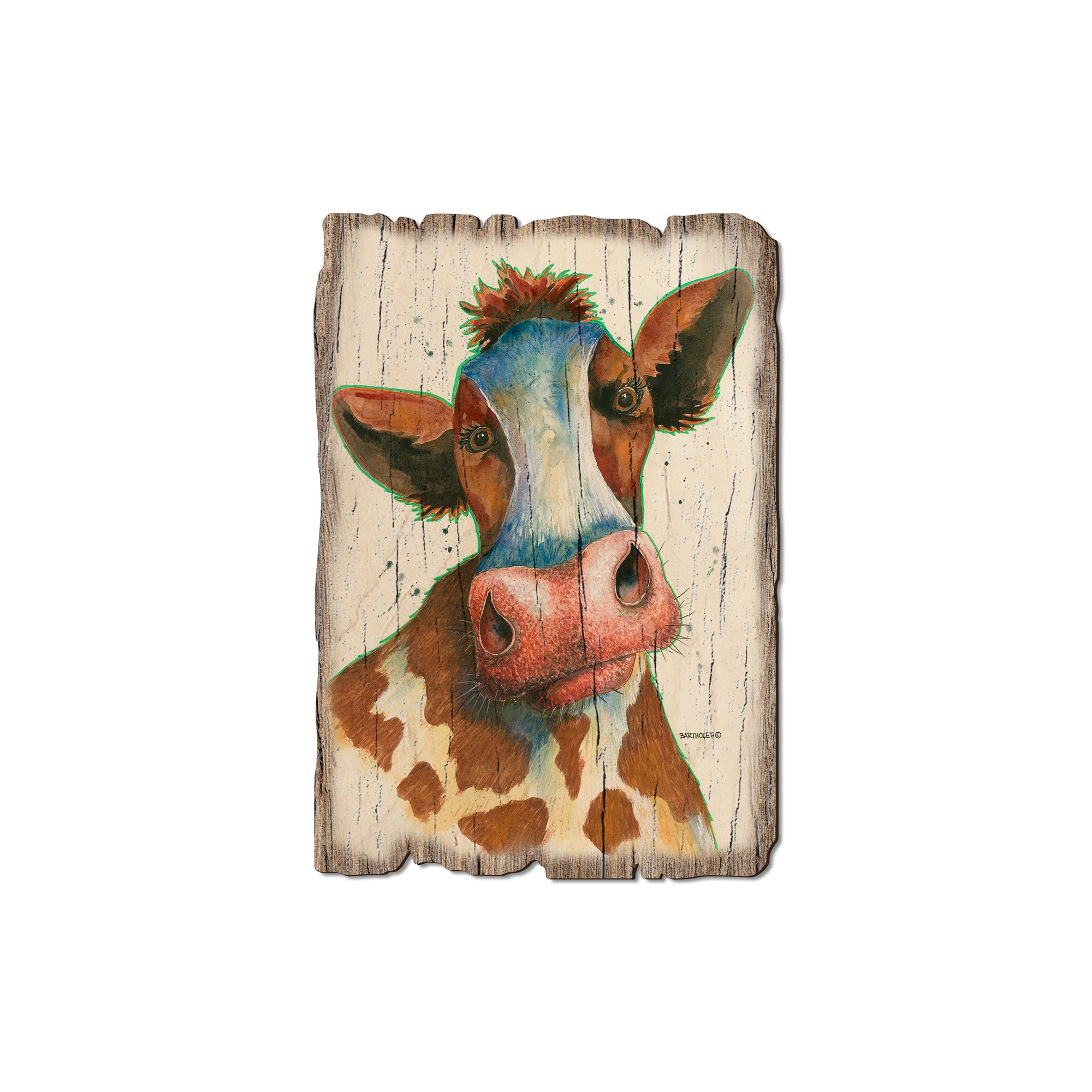 - Laser charred edge and colorful imagery creating arustic and weathered look.