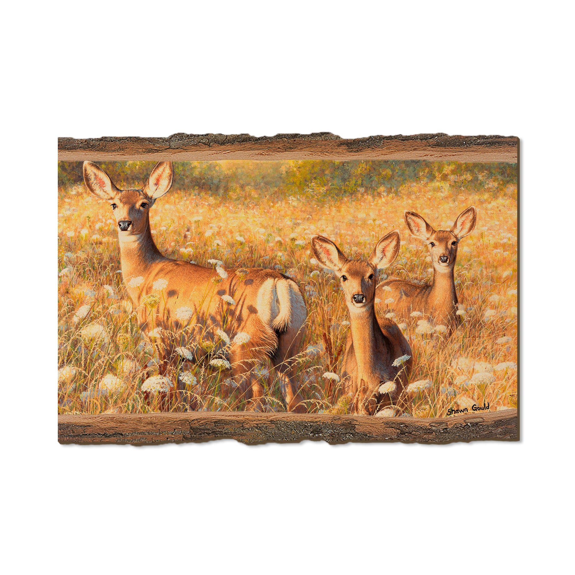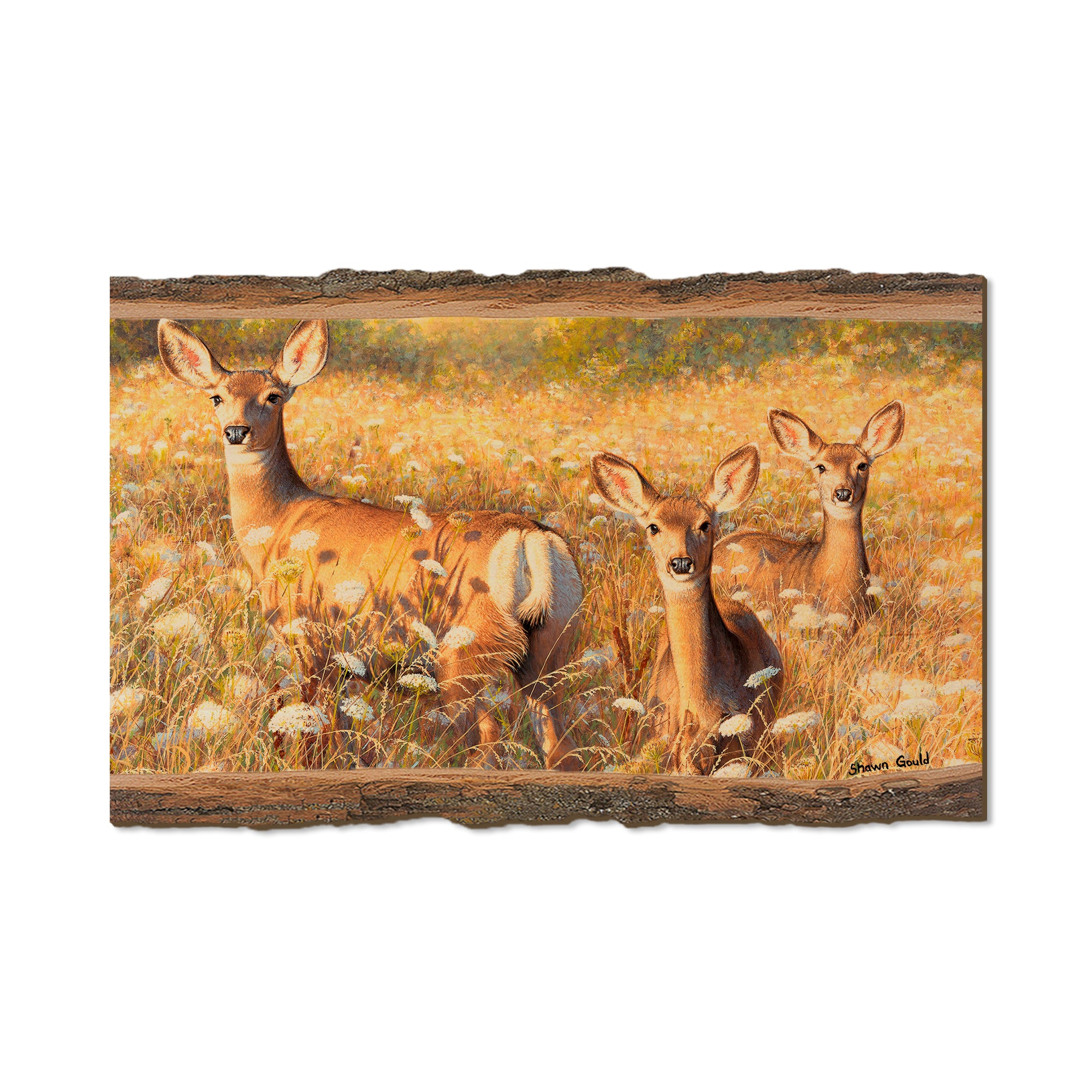 - Laser charred edge and colorful imagery to create a believable 'live edge'.