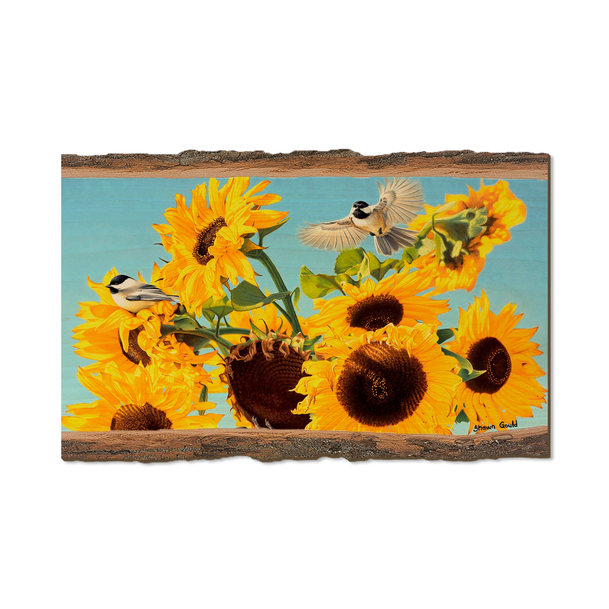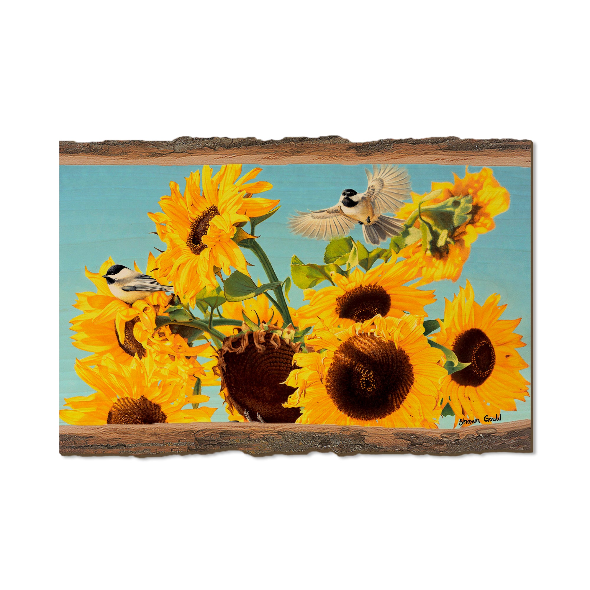 - Laser charred edge and colorful imagery to create a believable 'live edge'.