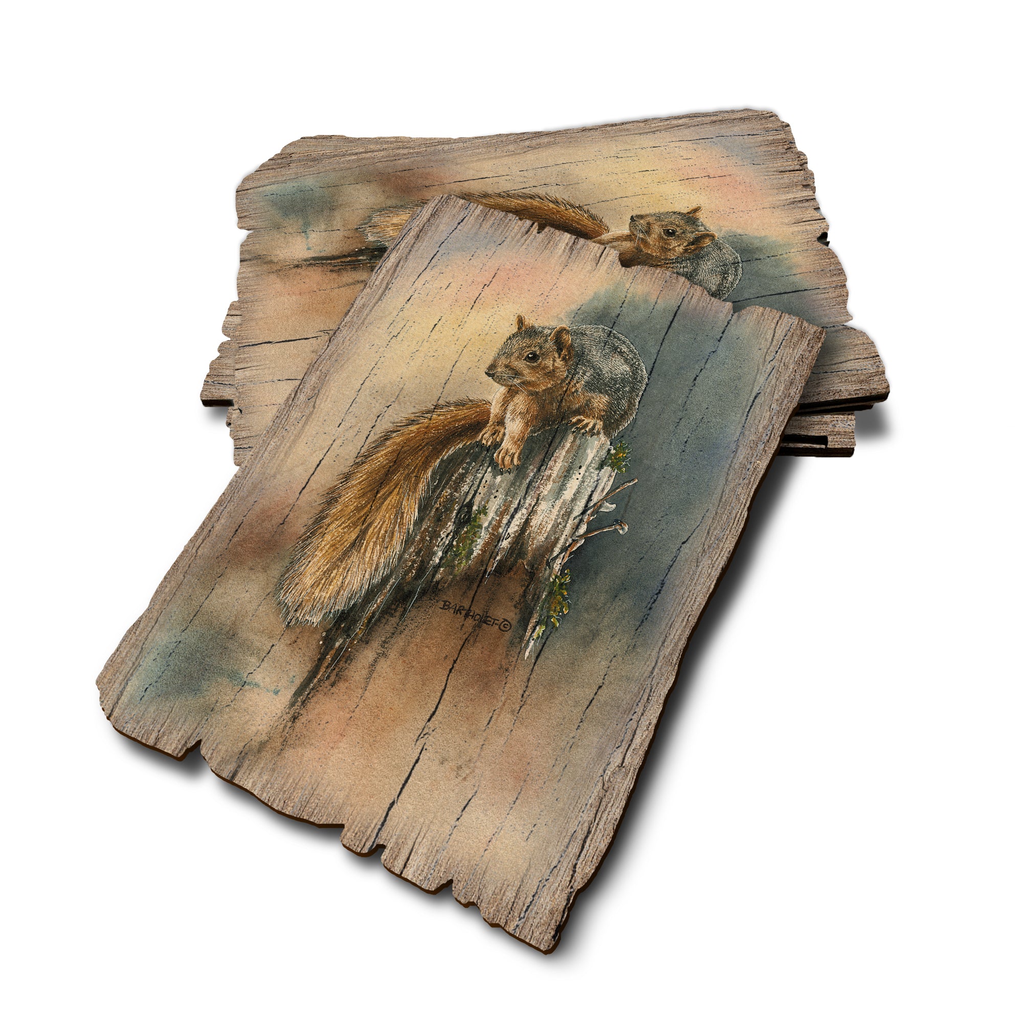 - Laser charred edge and colorful imagery creating arustic and weathered look.