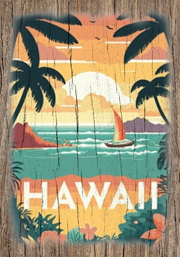 Hawaii Sunset - Weathered Edge - Postcard
