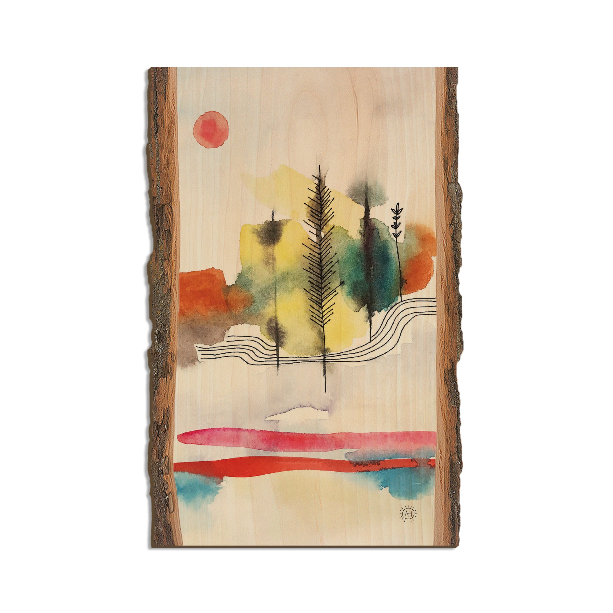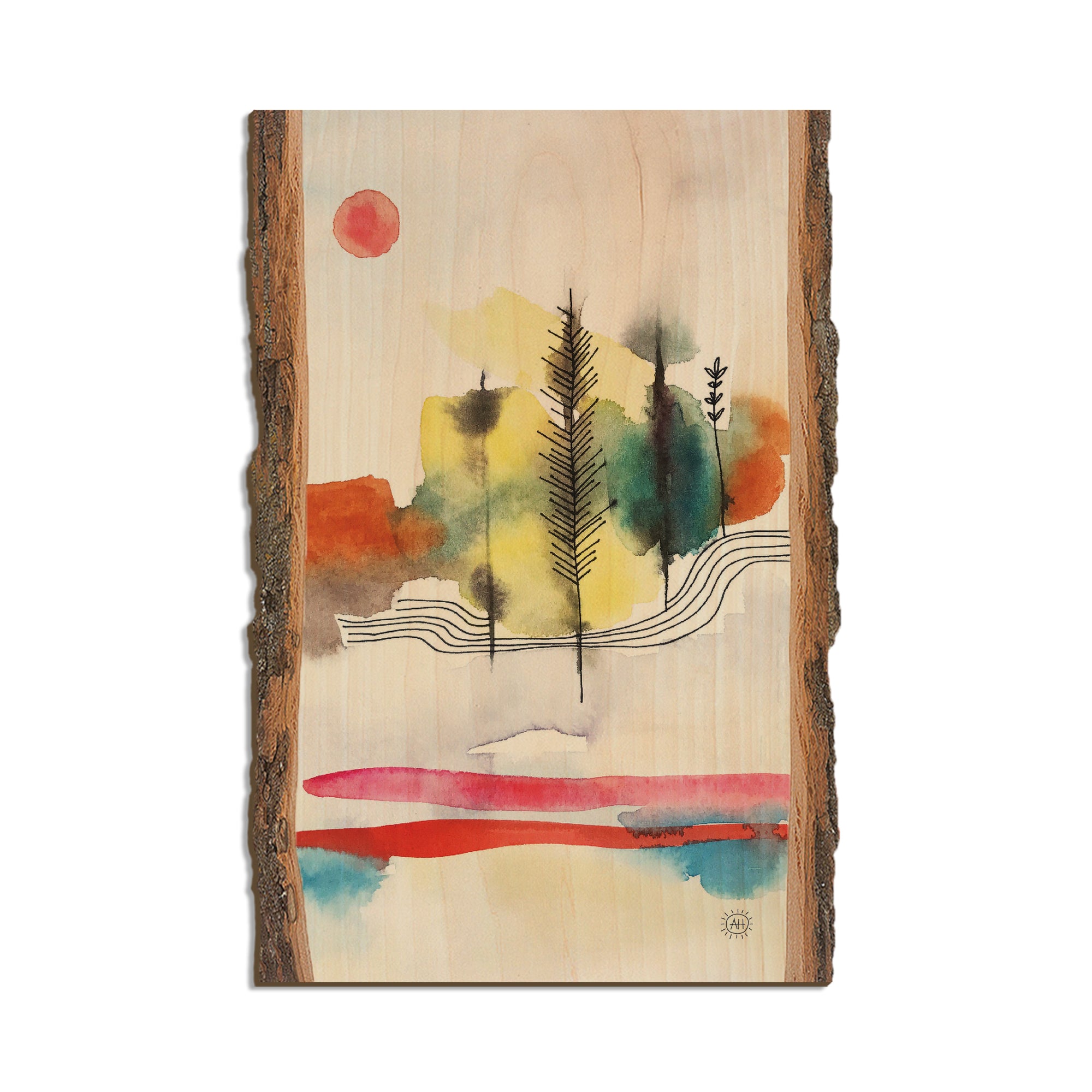 - Laser charred edge and colorful imagery to create a believable 'live edge'.