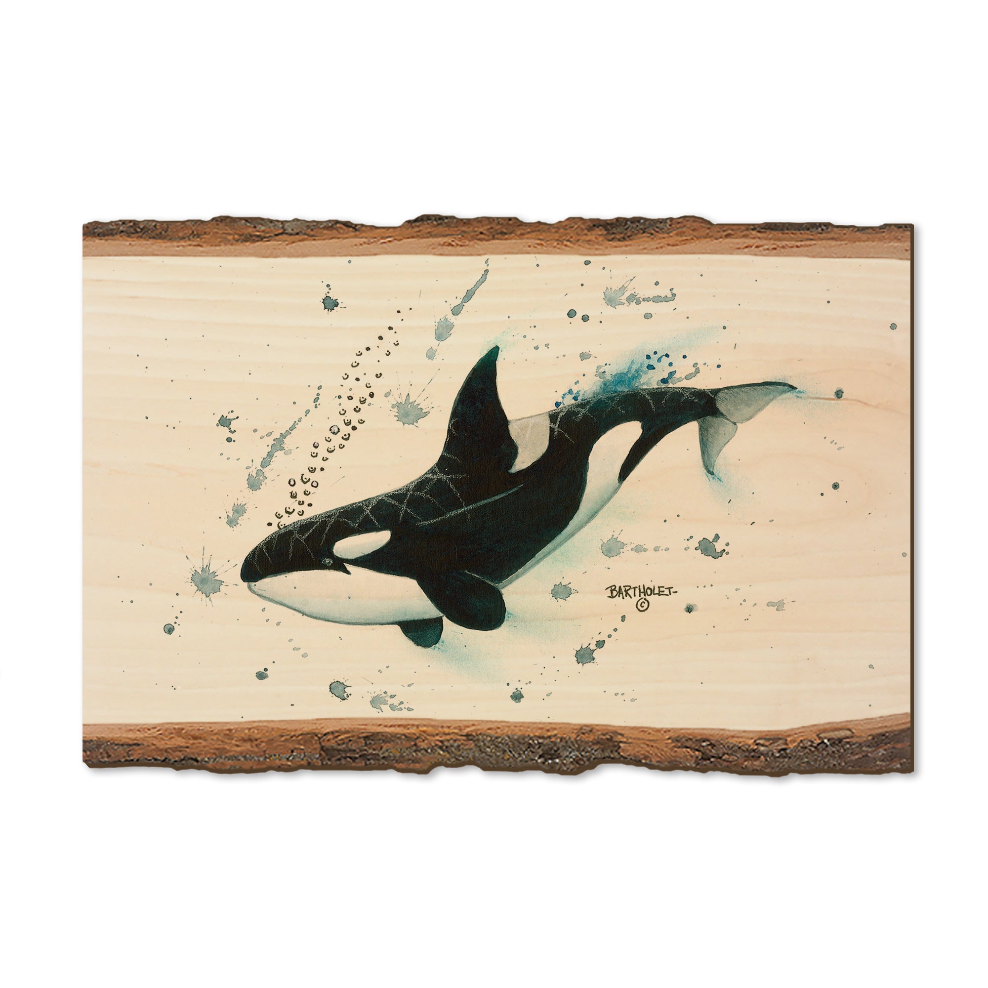 - Laser charred edge and colorful imagery to create a believable 'live edge'.