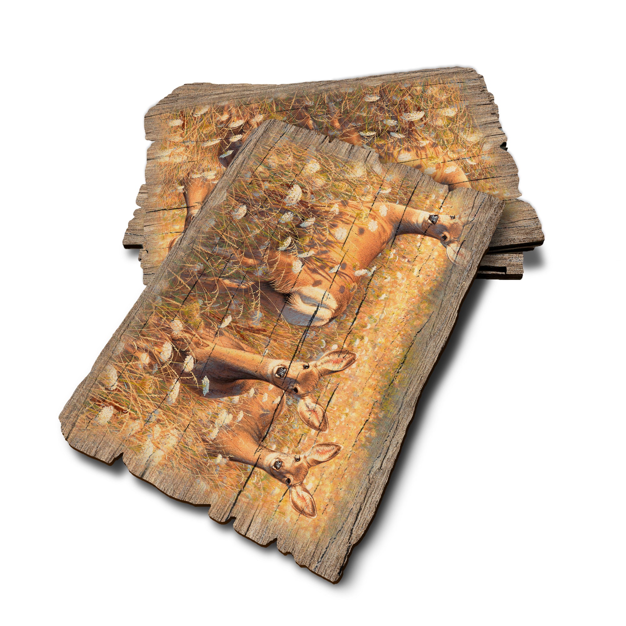 - Laser charred edge and colorful imagery creating arustic and weathered look.