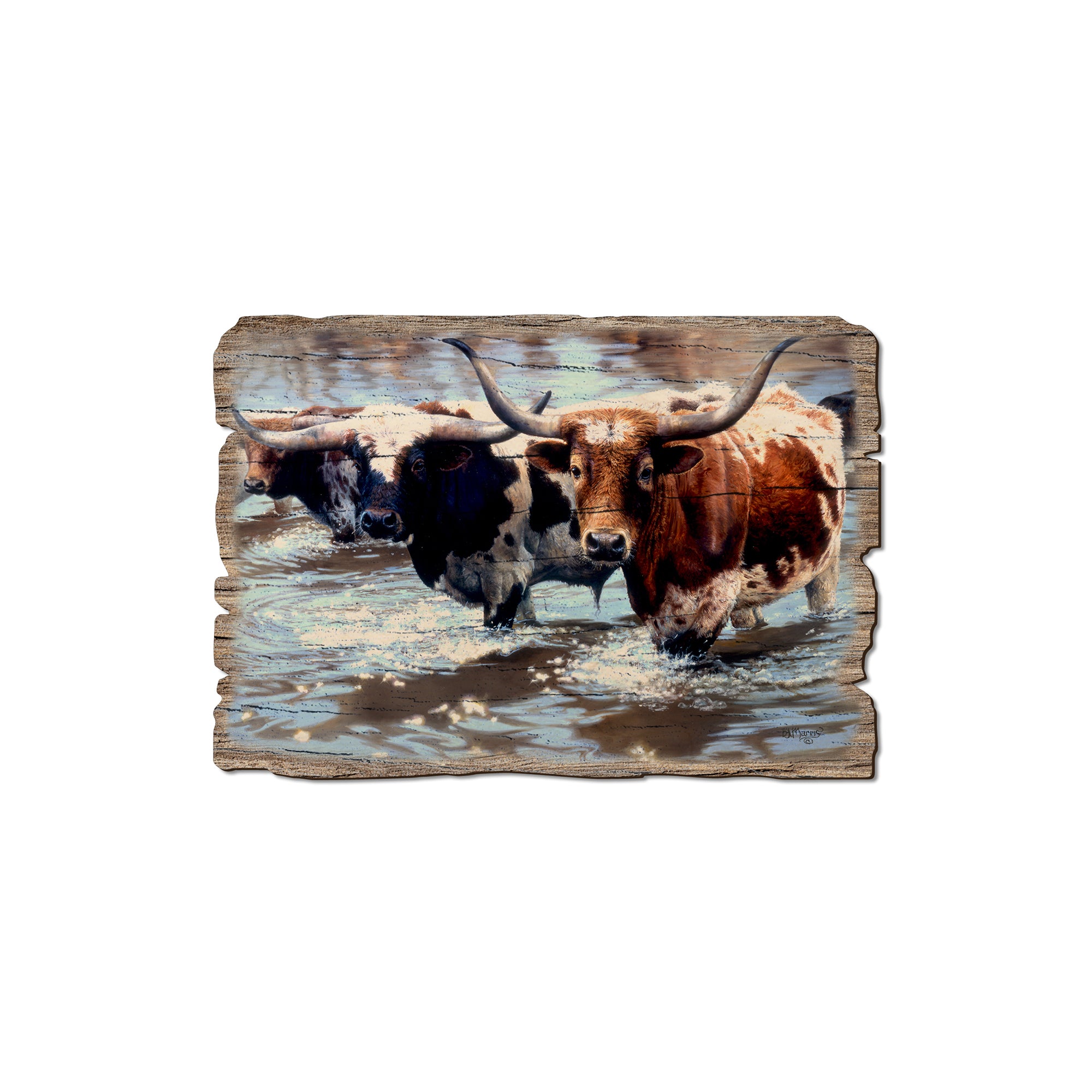 - Laser charred edge and colorful imagery creating arustic and weathered look.
