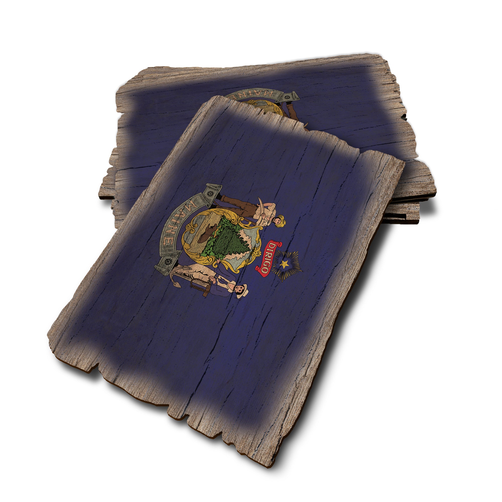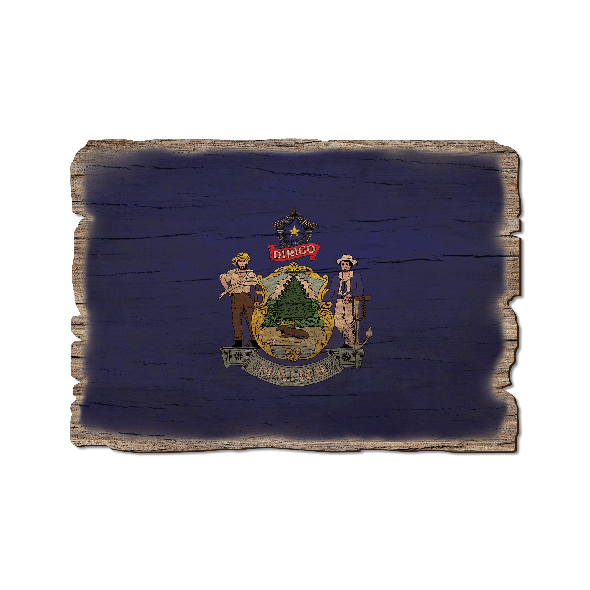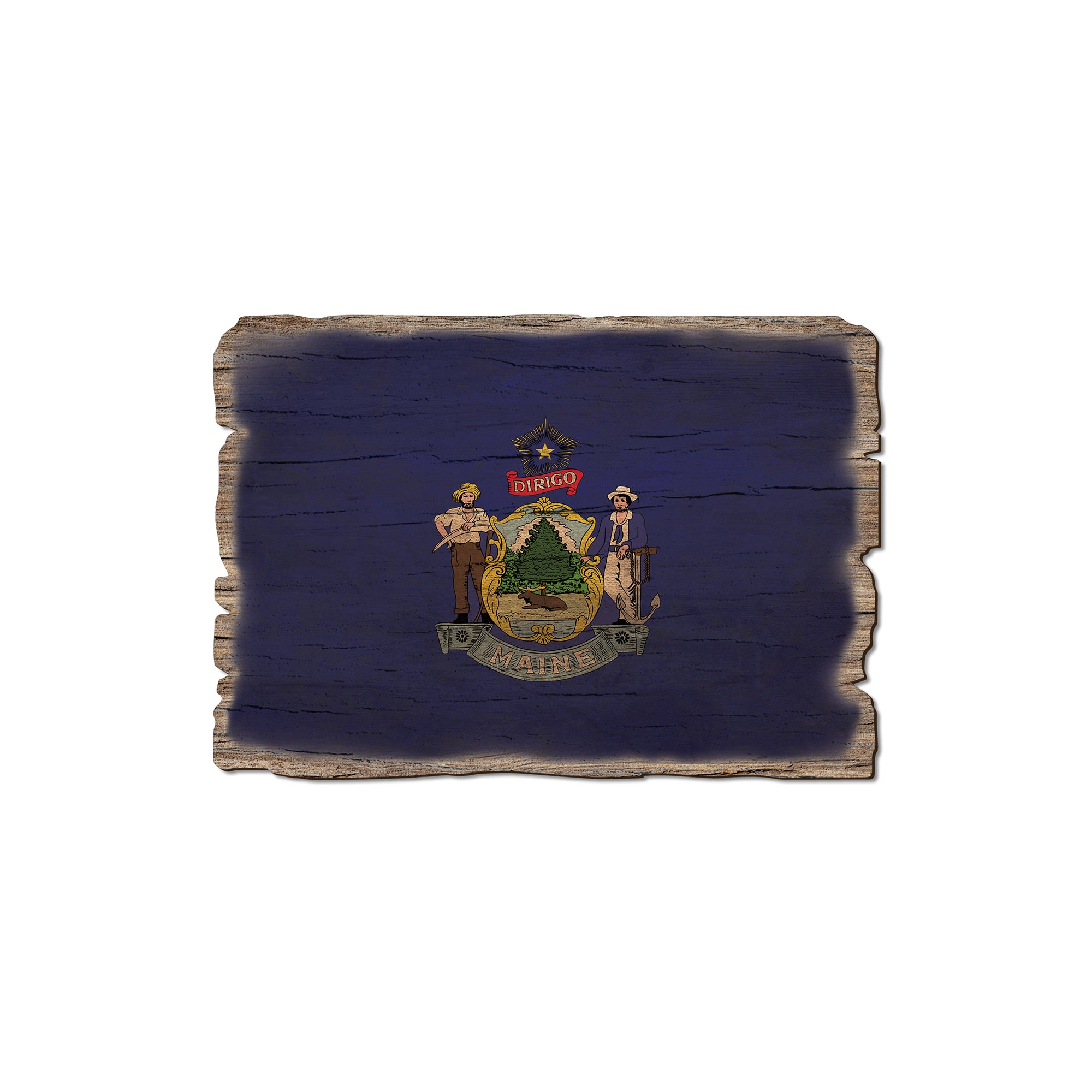 - Laser charred edge combined with rustic flag creating a weathered look.