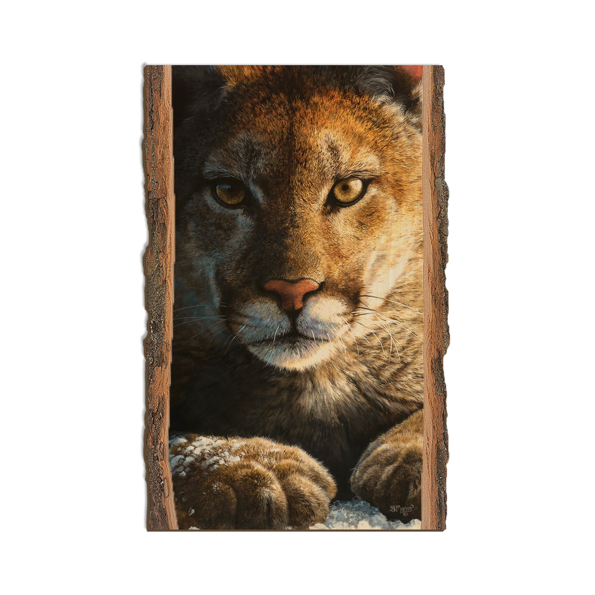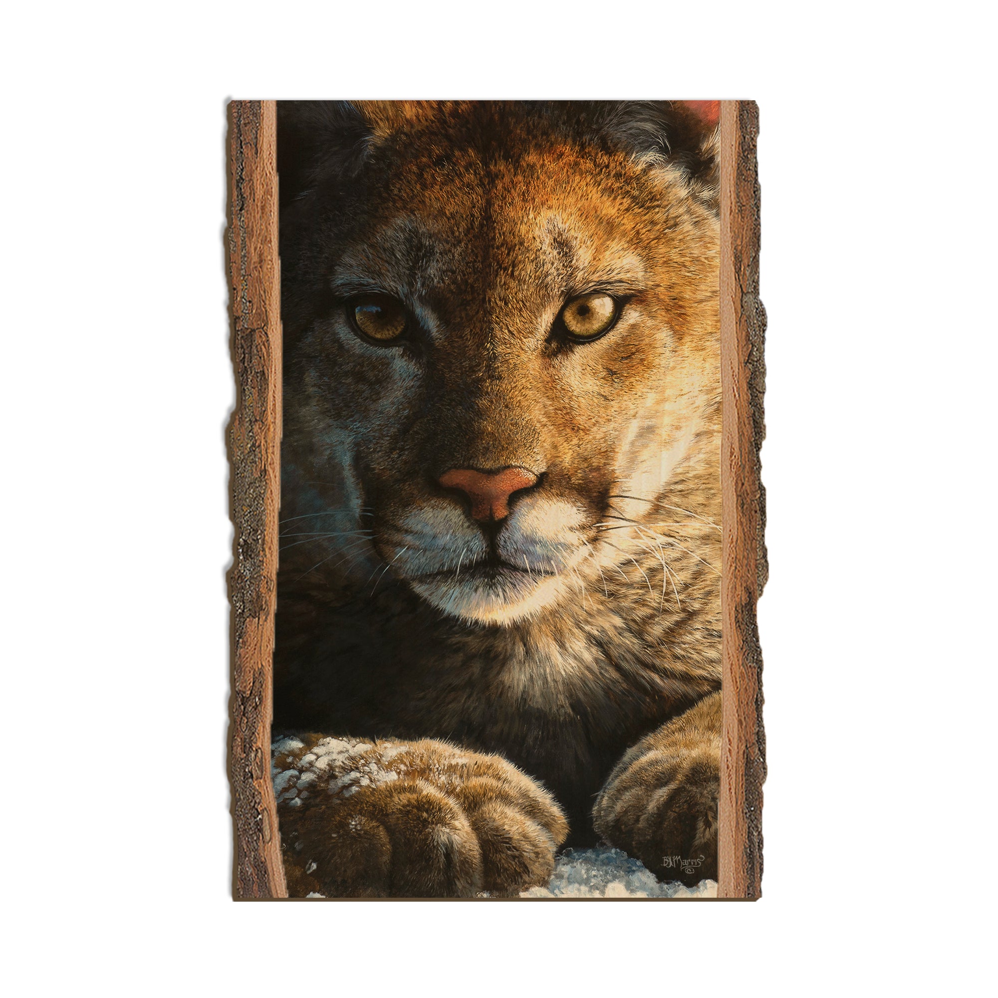 - Laser charred edge and colorful imagery to create a believable 'live edge'.