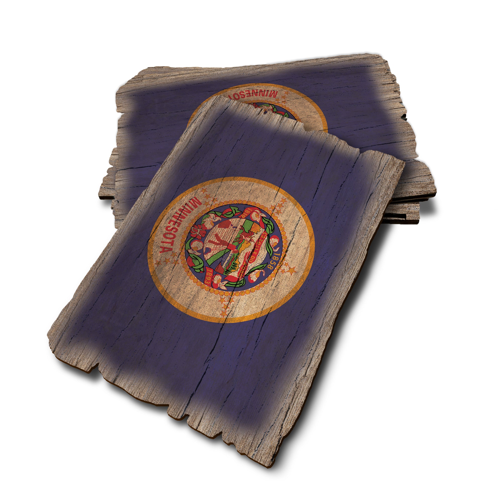 - Laser charred edge combined with rustic flag creating a weathered look.