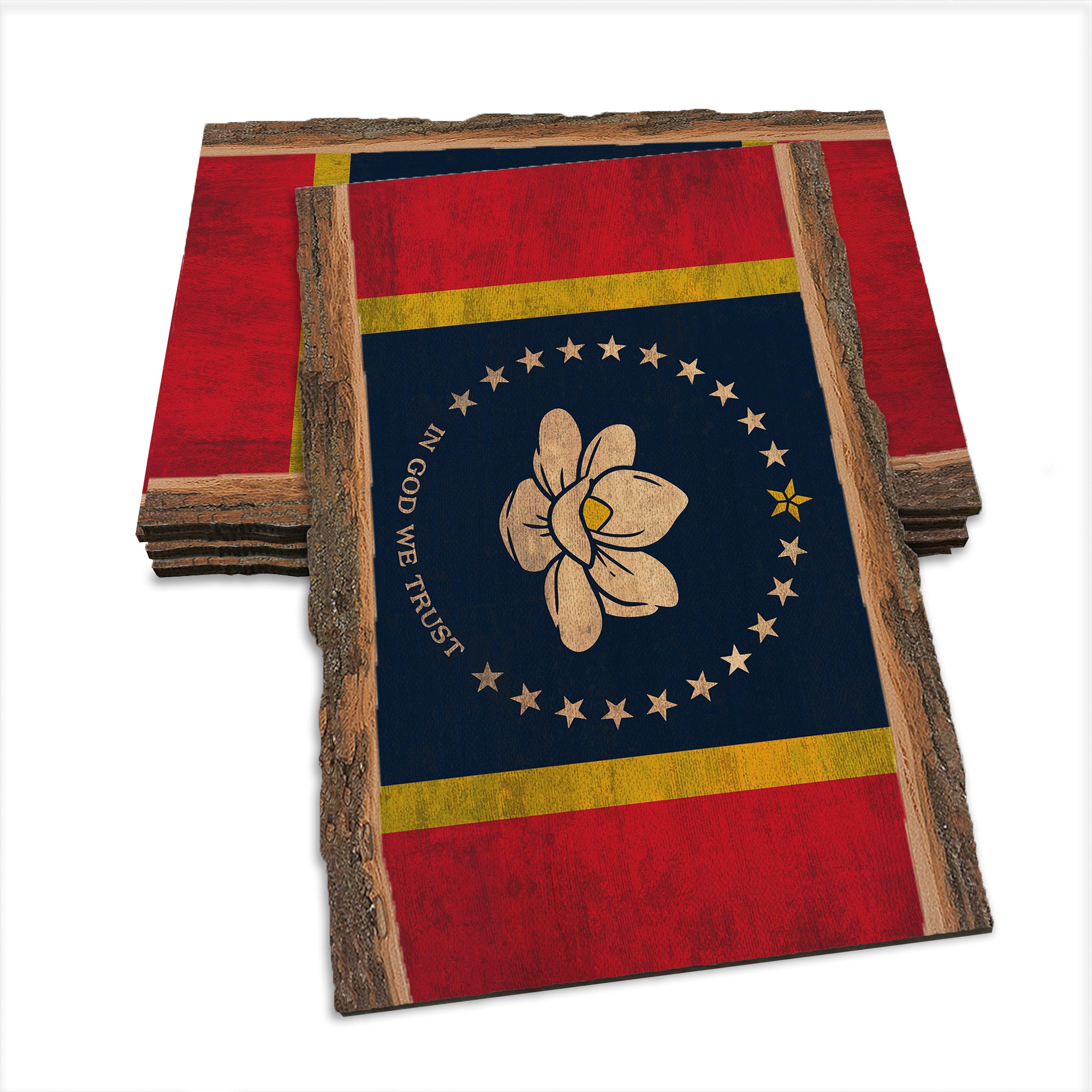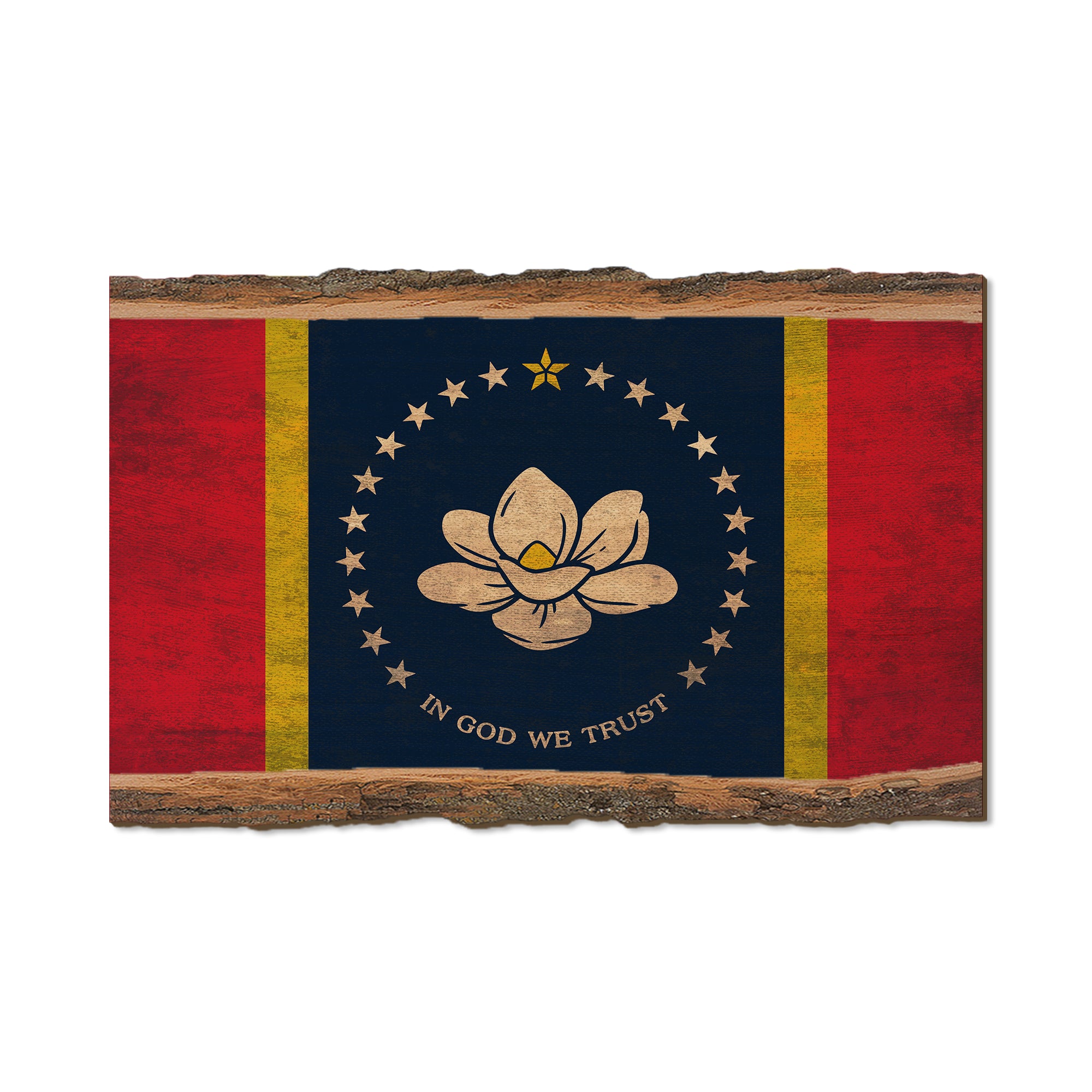- Rustic Flag combined with a live edge to create a unique look.