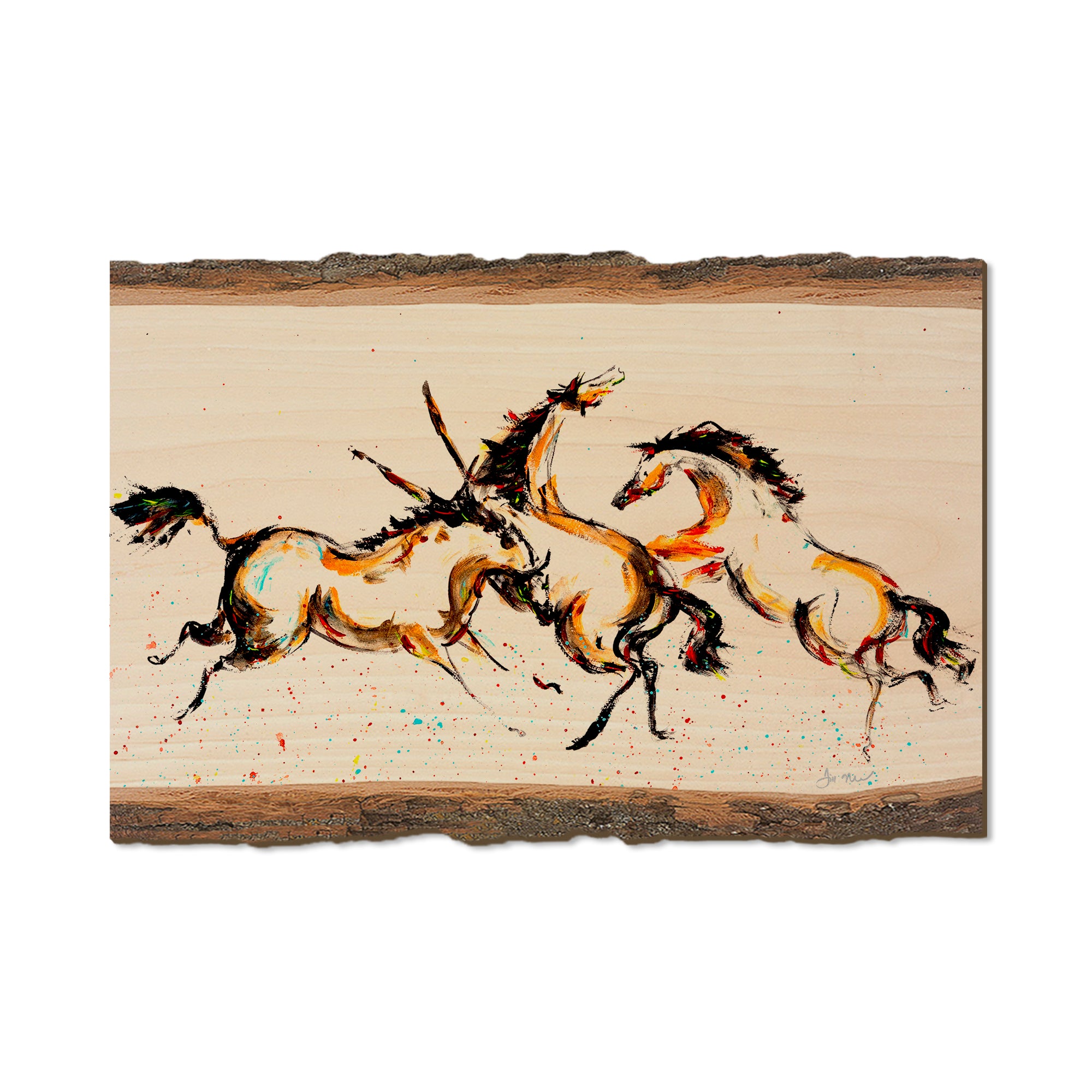 - Laser charred edge and colorful imagery to create a believable 'live edge'.