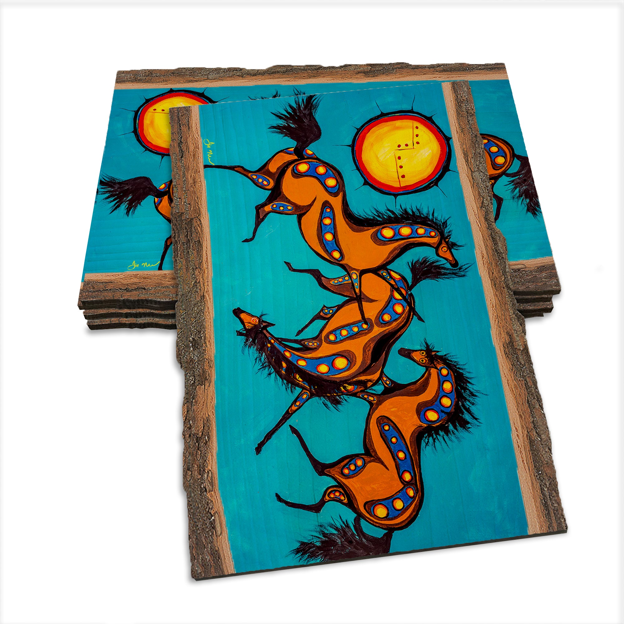 - Laser charred edge and colorful imagery to create a believable 'live edge'.