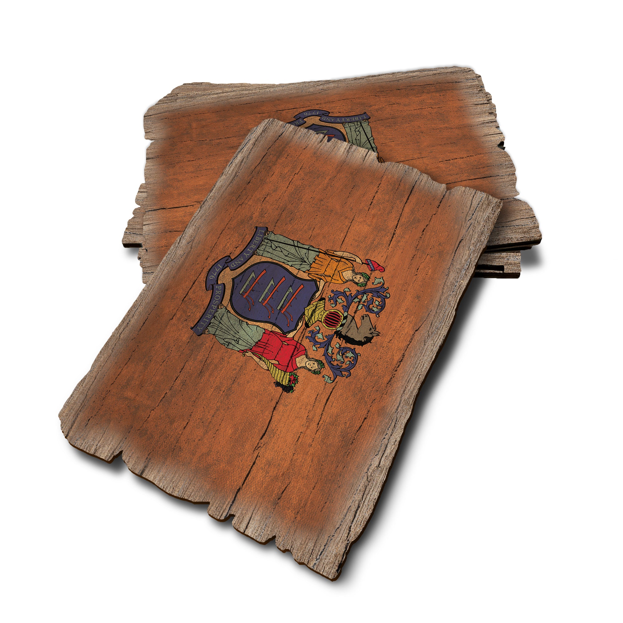- Laser charred edge combined with rustic flag creating a weathered look.