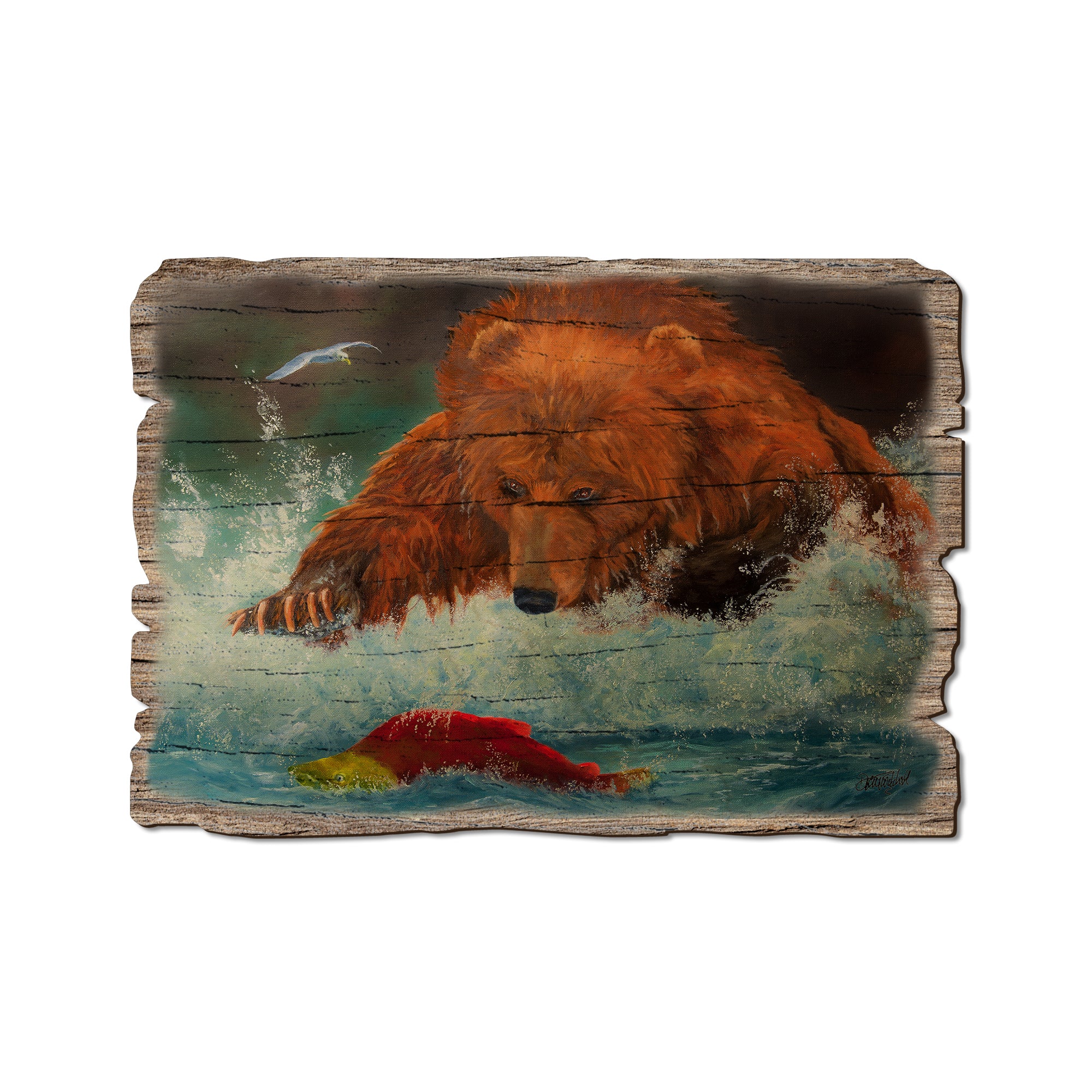 - Laser charred edge and colorful imagery creating arustic and weathered look.