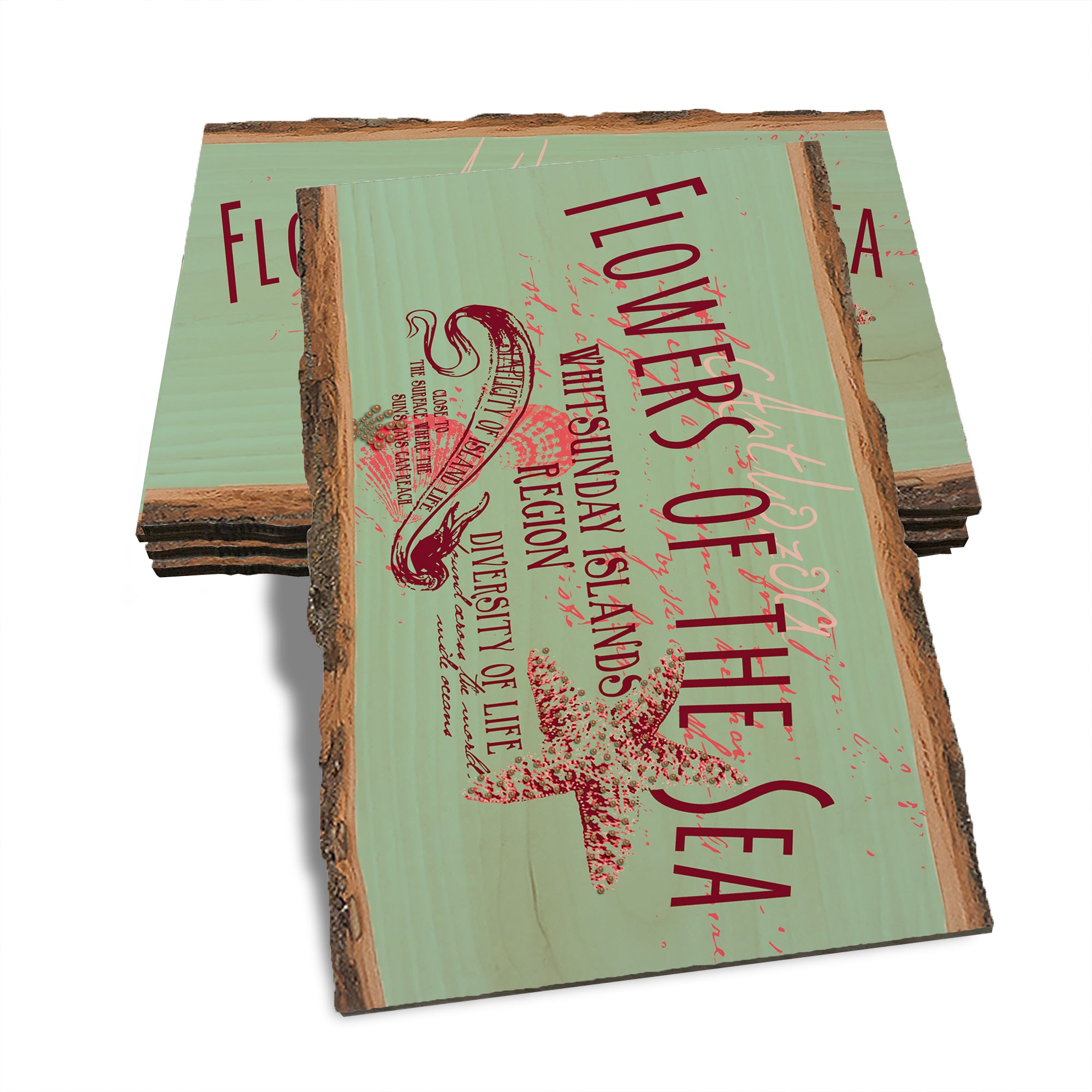 • Laser charred edge and colorful imagery to create a believable 'live edge'.