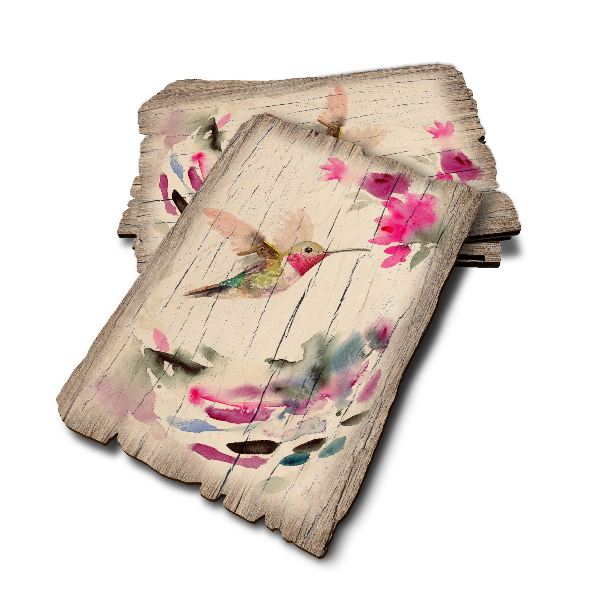 - Laser charred edge and colorful imagery creating a rustic and weathered look.