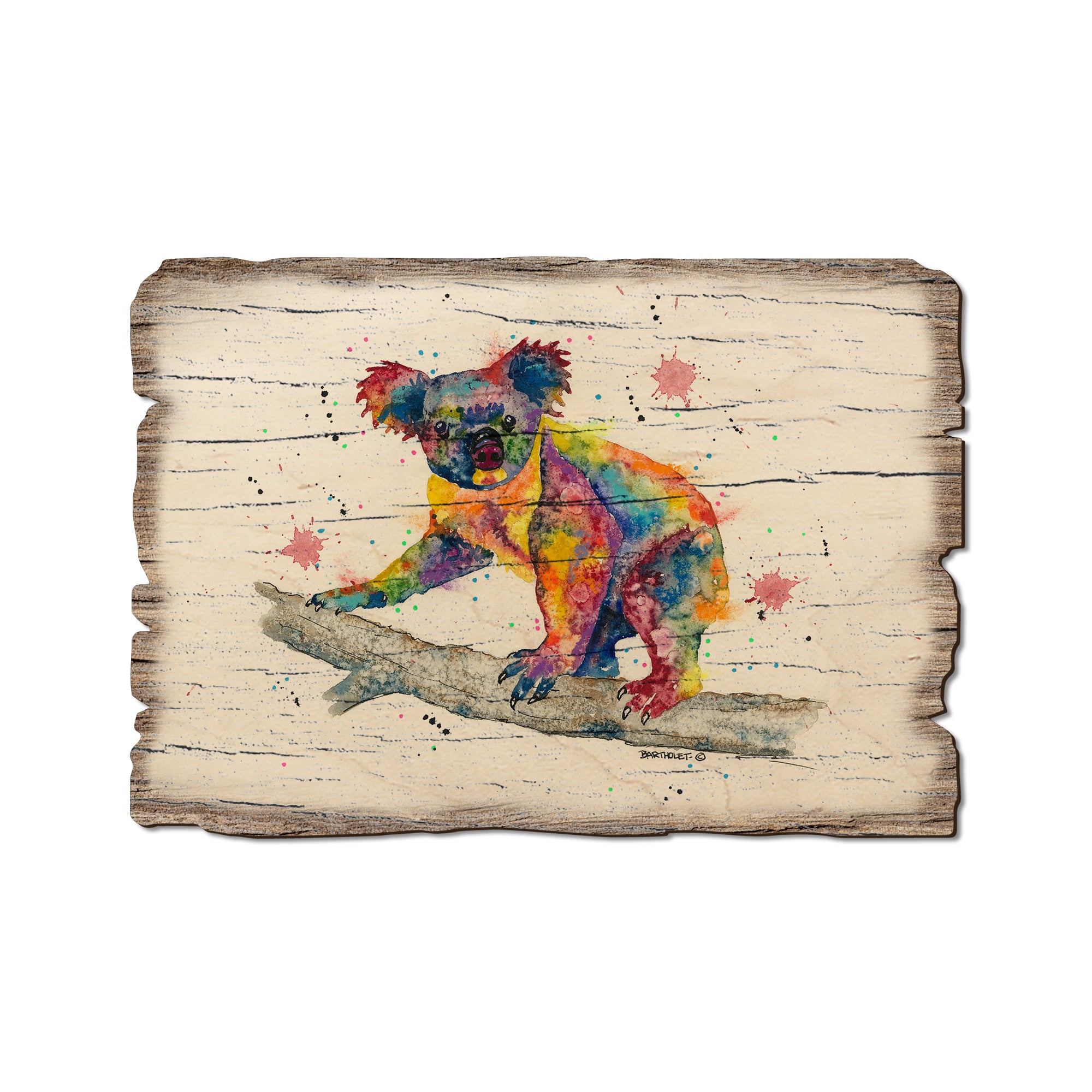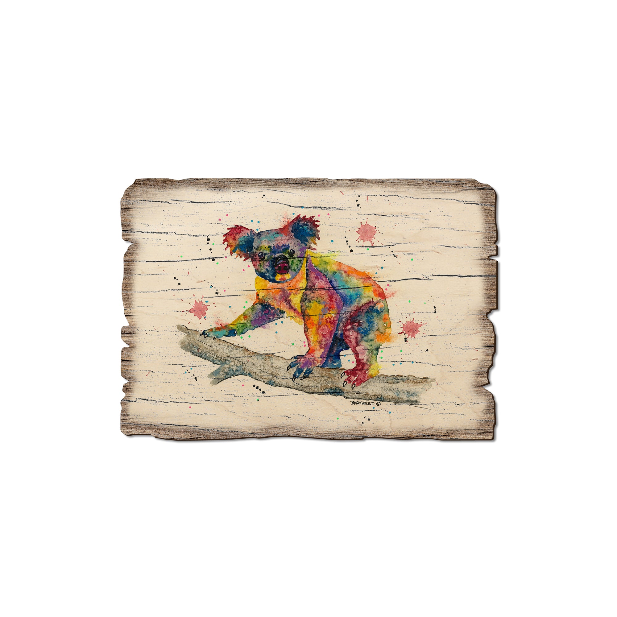 - Laser charred edge and colorful imagery creating arustic and weathered look.