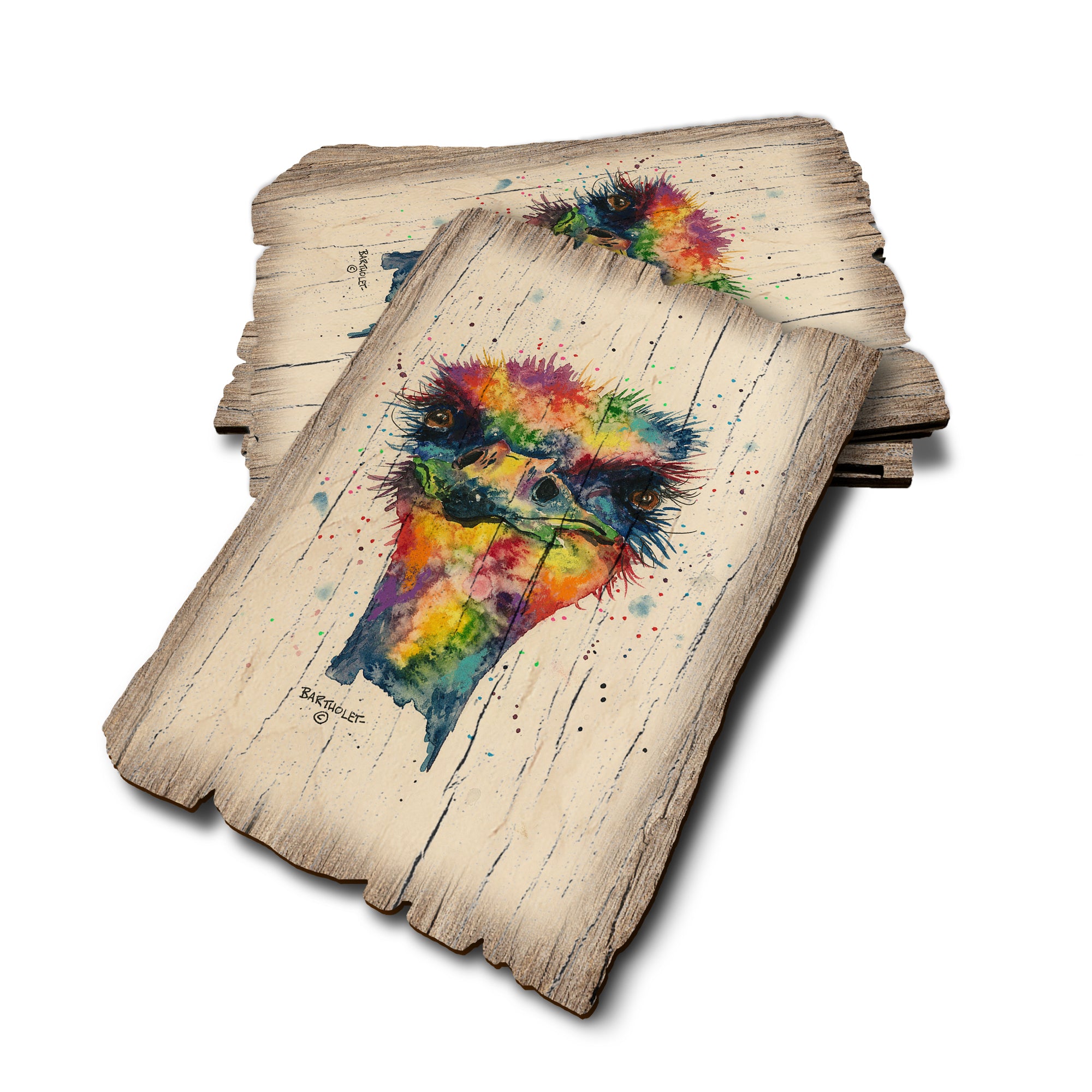 - Laser charred edge and colorful imagery creating arustic and weathered look.