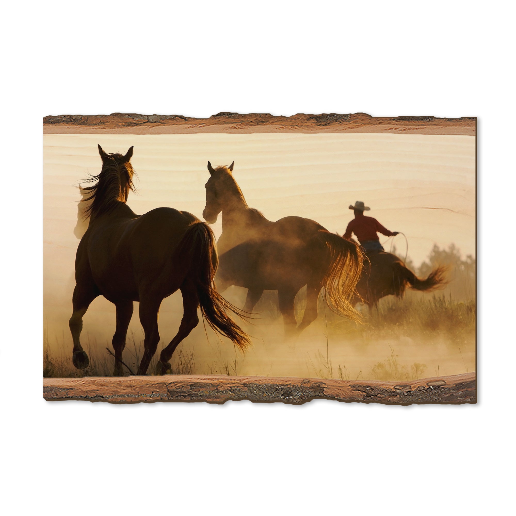 • Laser charred edge and colorful imagery to create a believable 'live edge'.