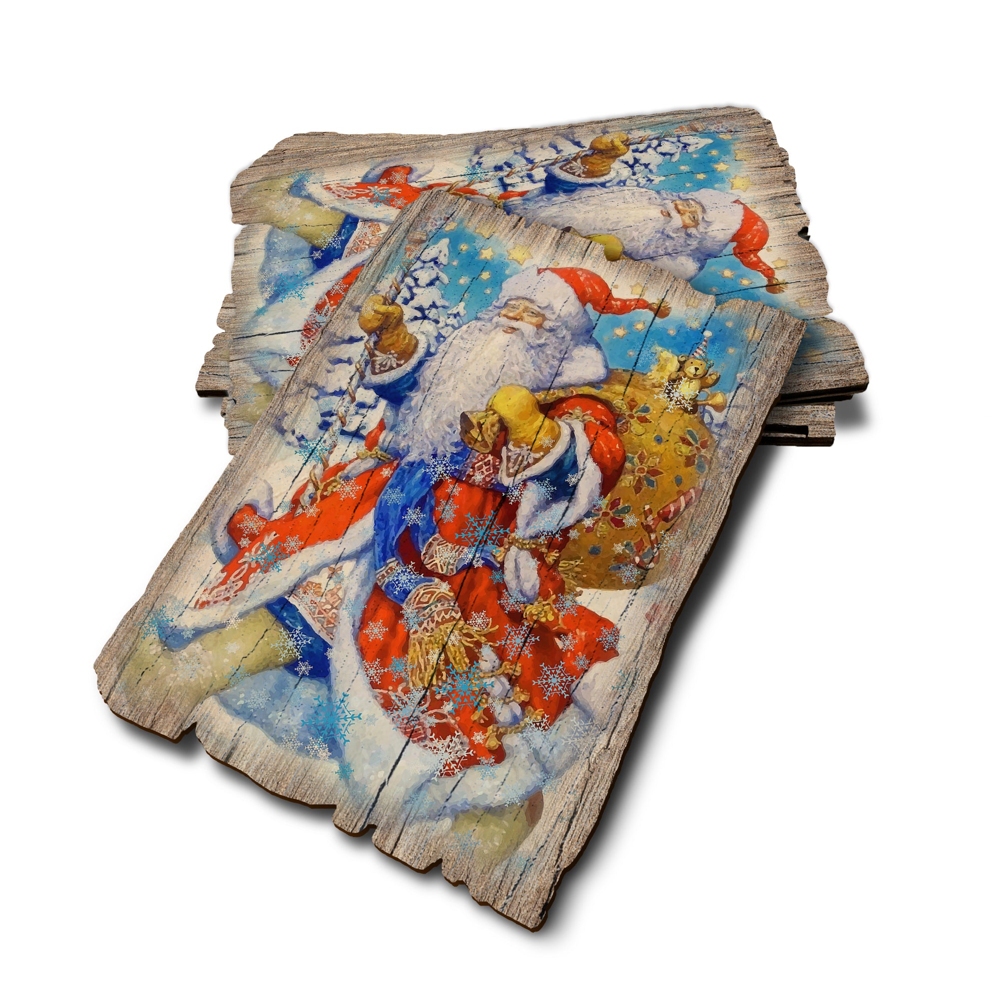 • Laser charred edge and colorful imagery creating arustic and weathered look.