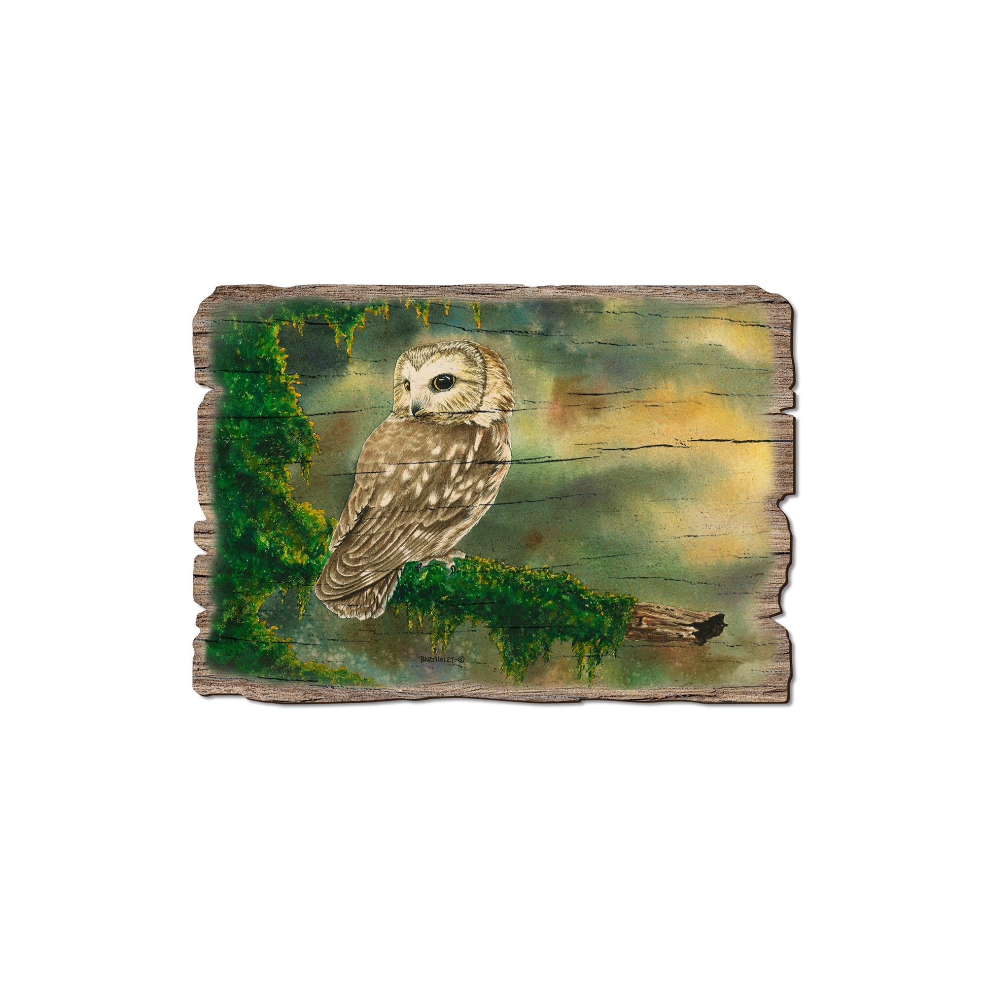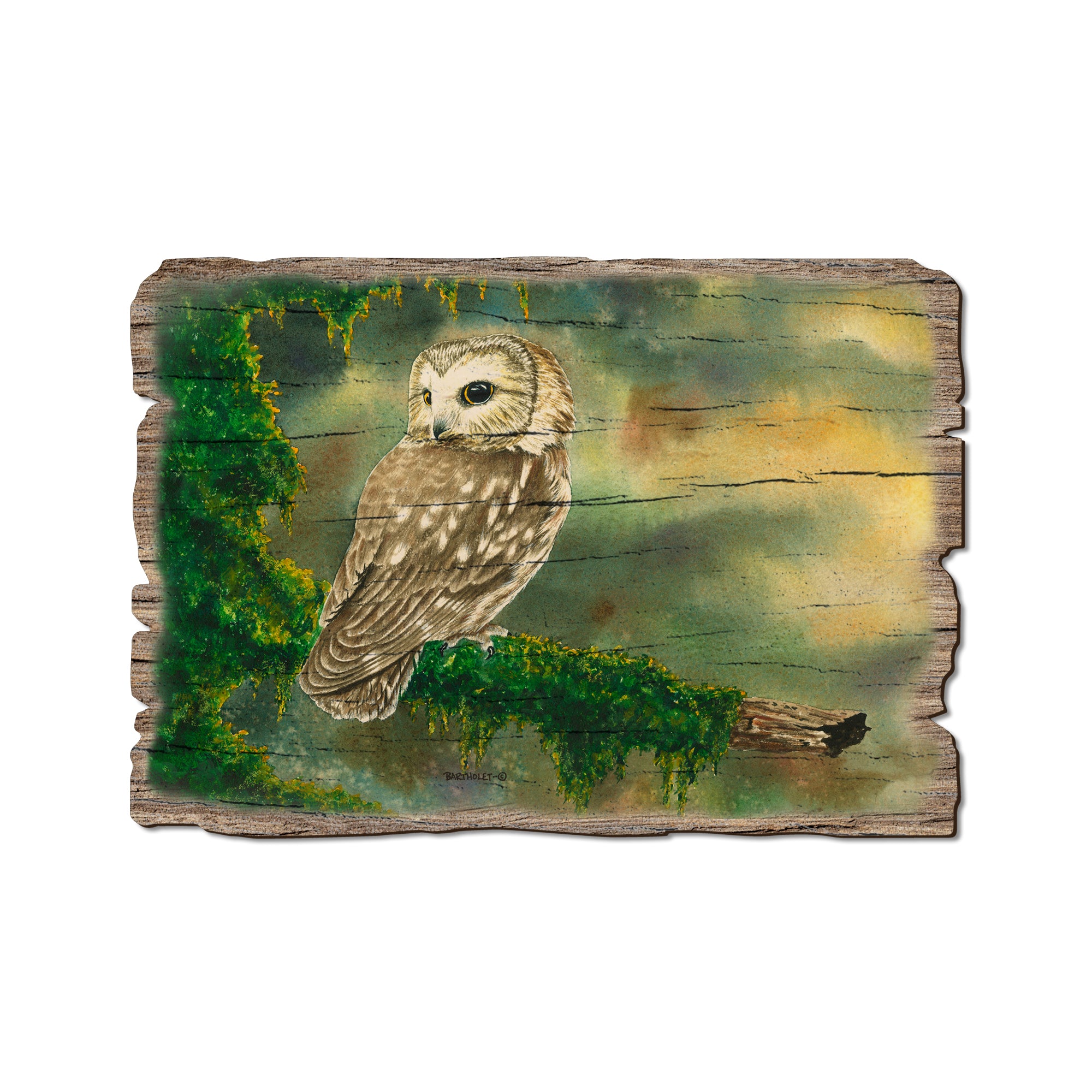 - Laser charred edge and colorful imagery creating arustic and weathered look.