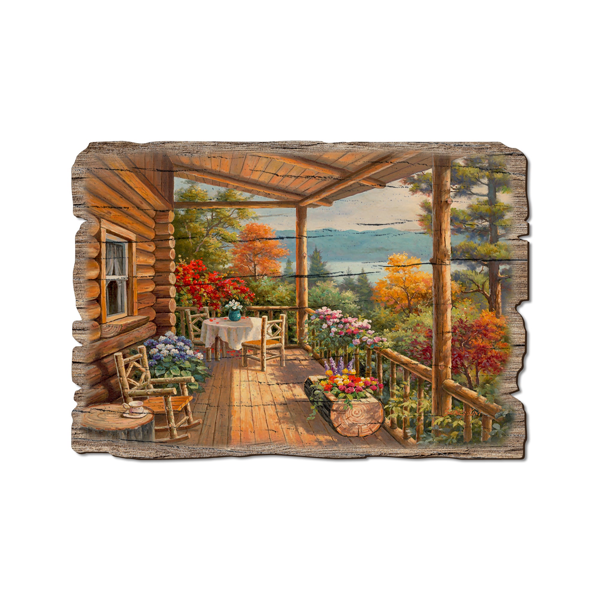 • Laser charred edge and colorful imagery creating arustic and weathered look.